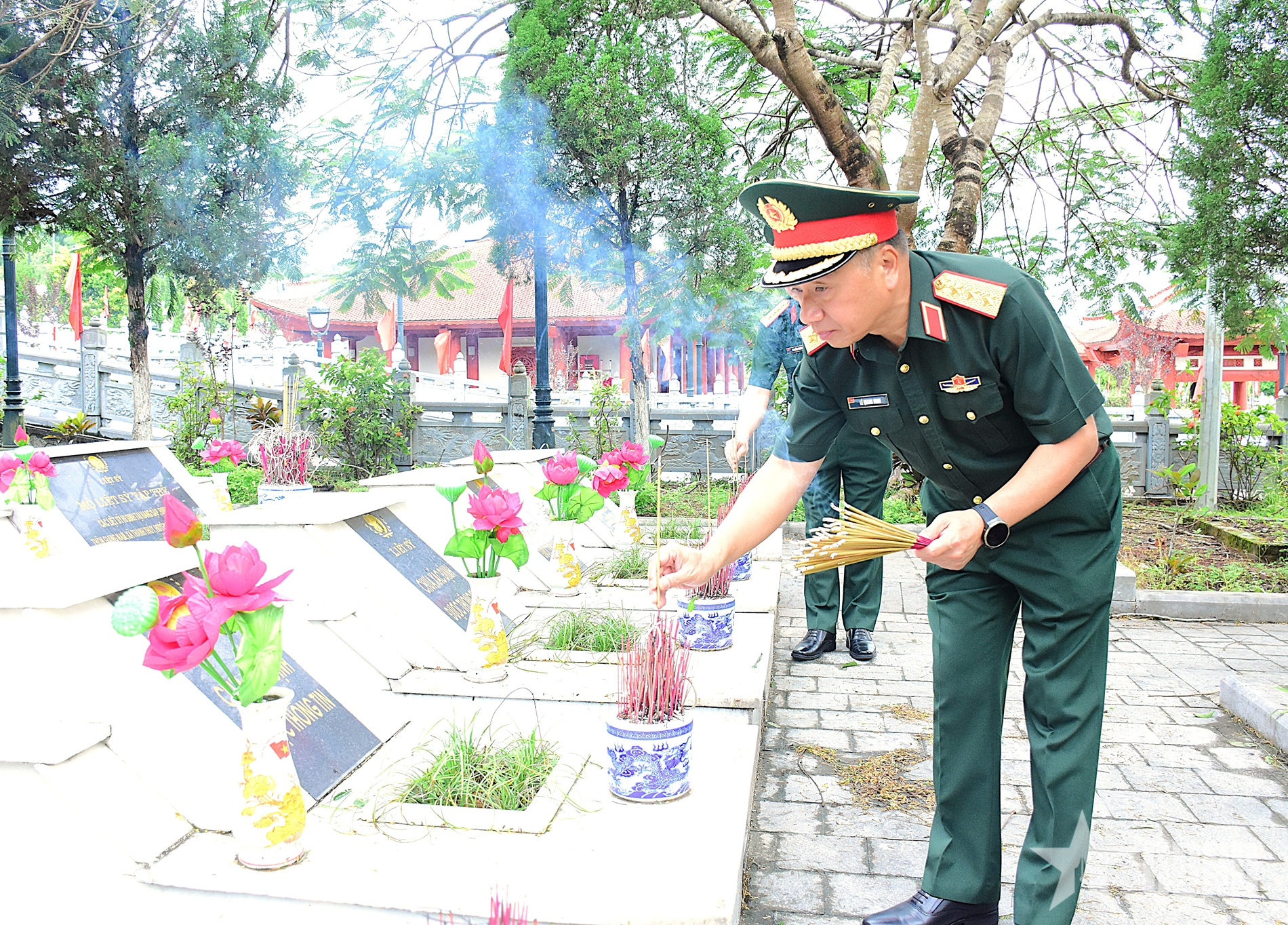 Trước anh linh các Anh hùng liệt sĩ, Thượng tướng Lê Quang Minh cùng đoàn công tác kính cẩn nghiêng mình tưởng nhớ và biết ơn sâu sắc đối với những người con ưu tú của dân tộc đã anh dũng chiến đấu, hy sinh trong cuộc chiến đấu bảo vệ Tổ quốc; nguyện đoàn kết một lòng, tuyệt đối trung thành với Tổ quốc, với Đảng và nhân dân, kiên định với mục tiêu, lý tưởng cách mạng của Đảng, quyết tâm thực hiện thắng lợi mục tiêu xây dựng Quân đội nhân dân Việt Nam cách mạng, chính quy, tinh nhuệ, hiện đại, góp phần cùng toàn Đảng, toàn dân và toàn quân đưa đất nước phát triển nhanh, bền vững trong kỷ nguyên mới, vững bước đi lên xã hội chủ nghĩa.
