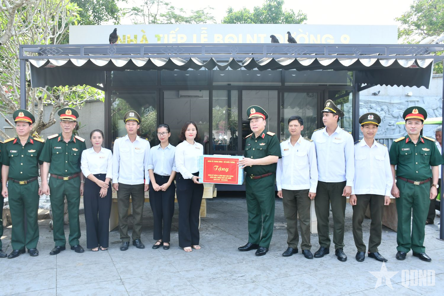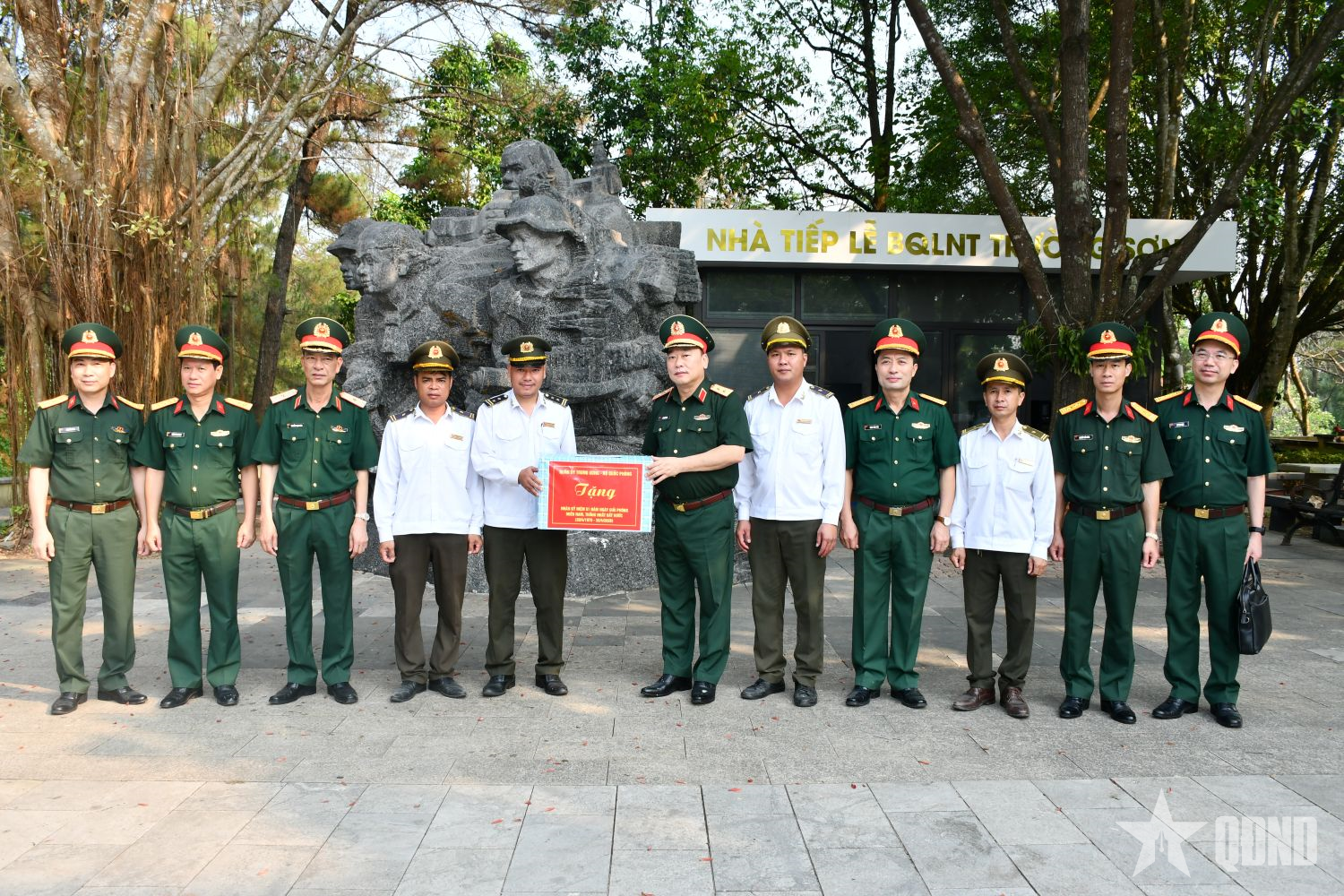 Trung tướng Lê Quang Đạo trao quà tặng các ban quản lý: Nghĩa trang Liệt sĩ quốc gia Trường Sơn, Nghĩa trang Liệt sĩ quốc gia Đường 9 và Di tích lịch sử quốc gia đặc biệt Thành cổ Quảng Trị.