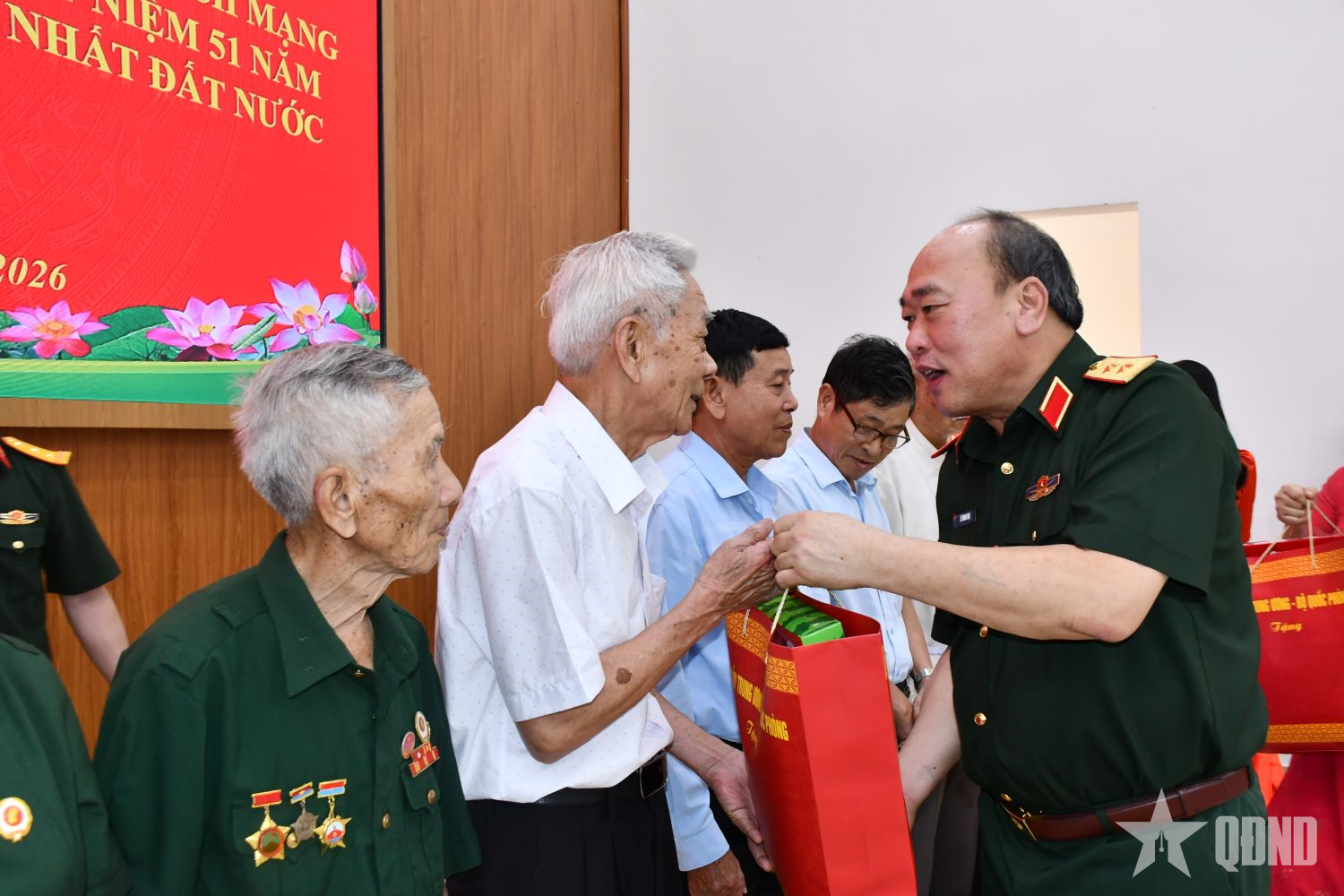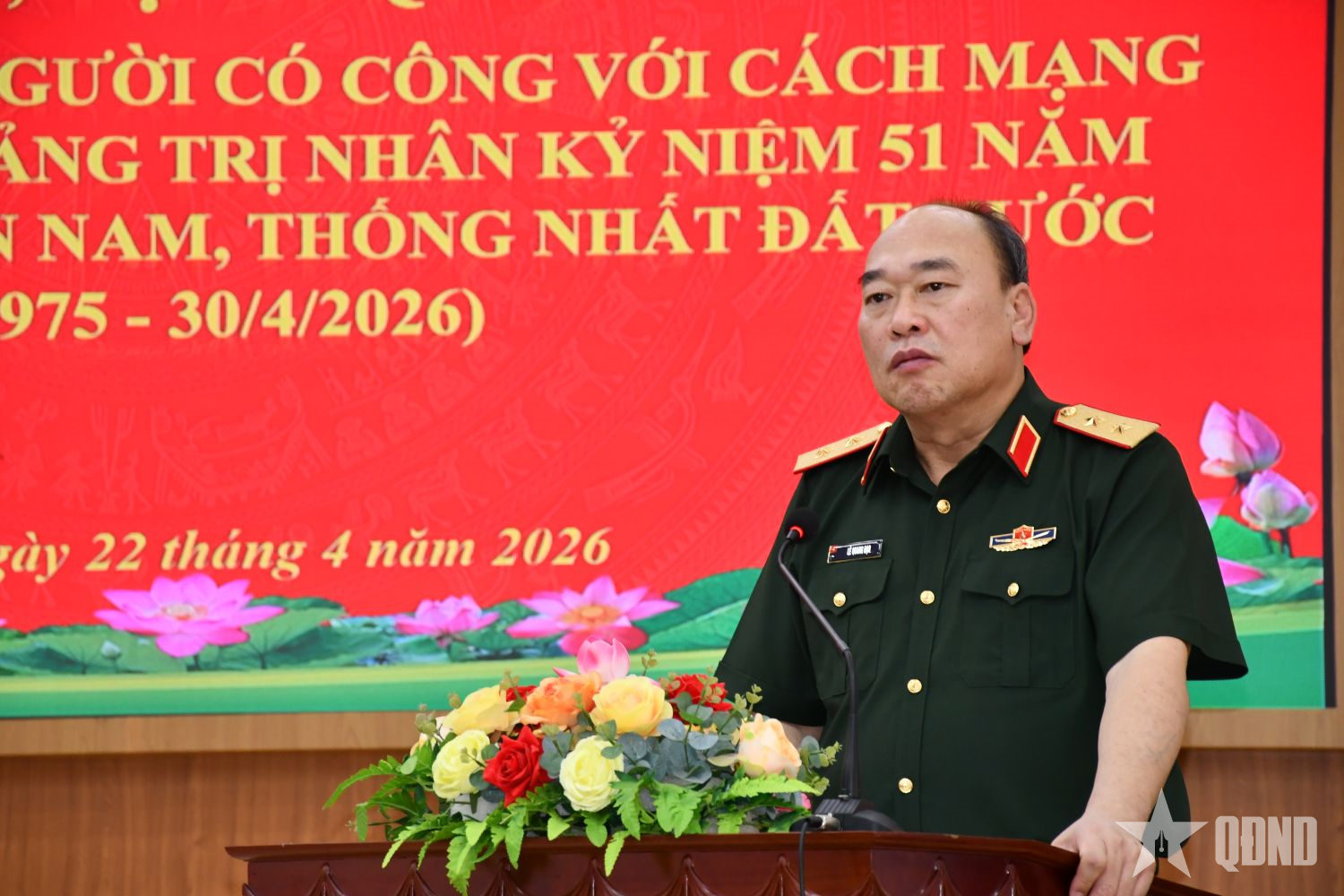 Phát biểu tại buổi gặp mặt, tặng quà, Trung tướng Lê Quang Đạo cho biết, nhân dịp kỷ niệm 51 năm Ngày giải phóng miền Nam, thống nhất đất nước (30-4-1975 / 30-4-2026), Quân ủy Trung ương, Bộ Quốc phòng đã tổ chức nhiều đoàn công tác viếng các nghĩa trang liệt sĩ, thăm, tặng quà các gia đình chính sách trên cả nước, trong đó có tỉnh Quảng Trị.