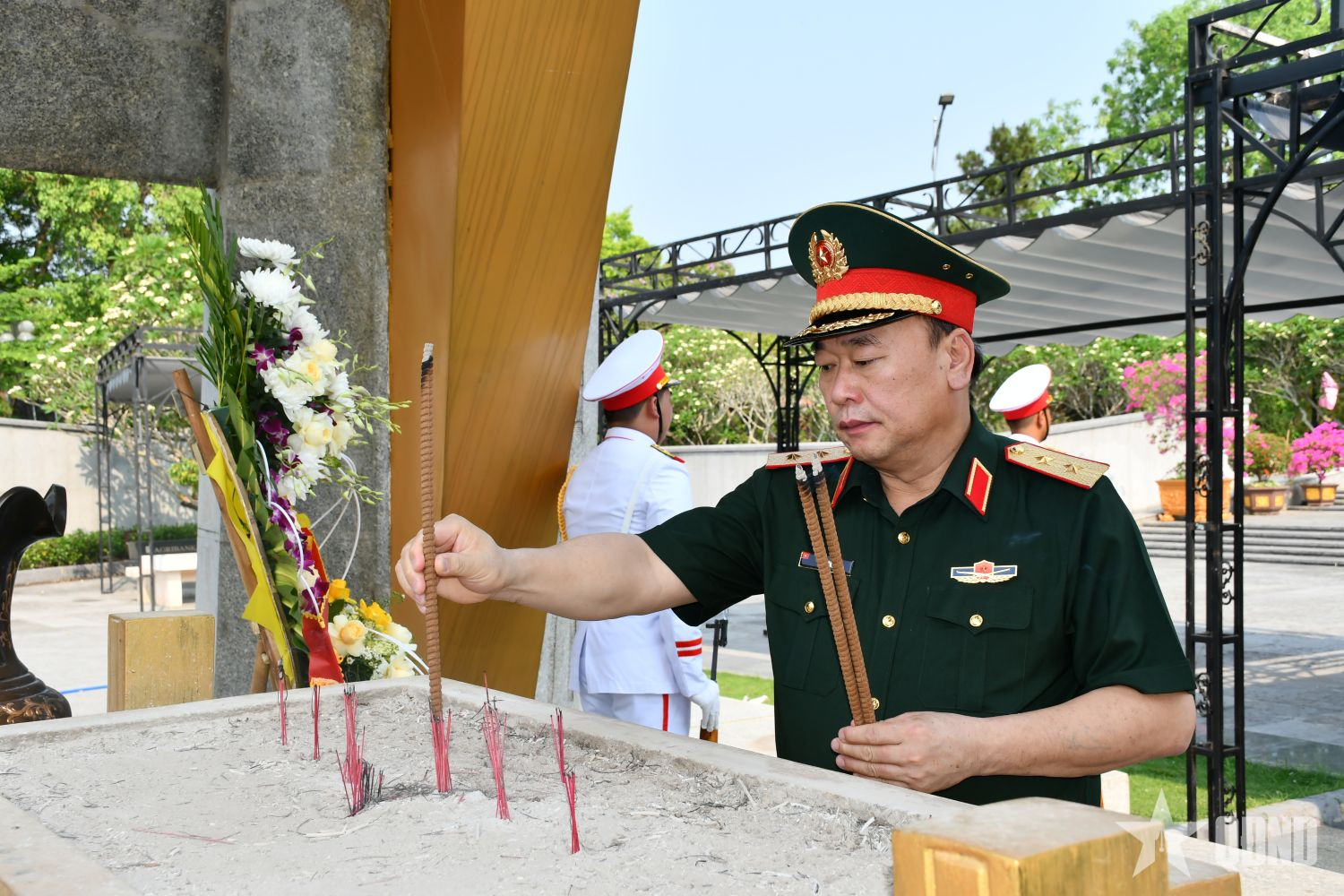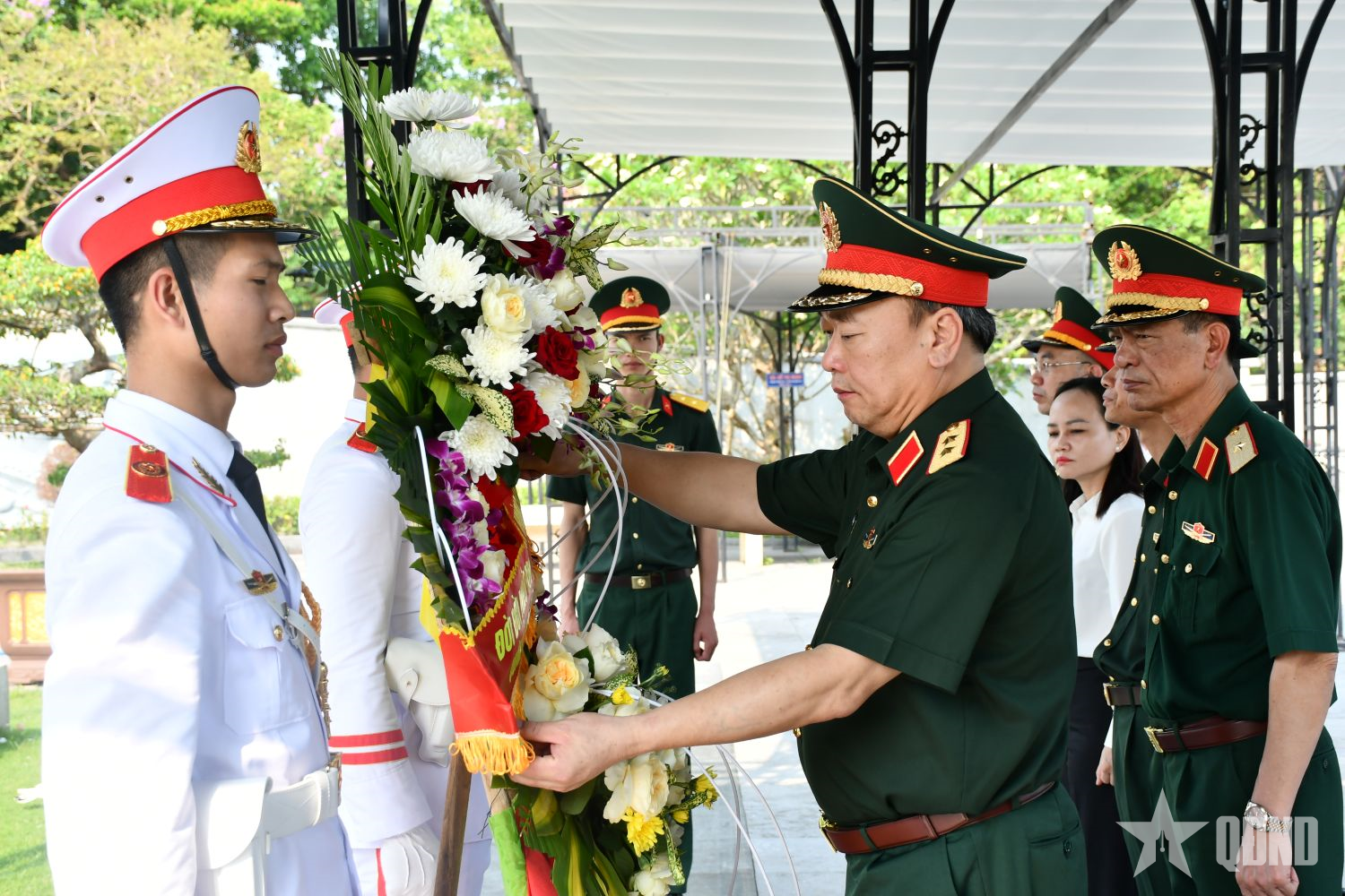 Trung tướng Lê Quang Đạo cùng đoàn công tác dâng hoa, dâng hương, tri ân các Anh hùng liệt sĩ.