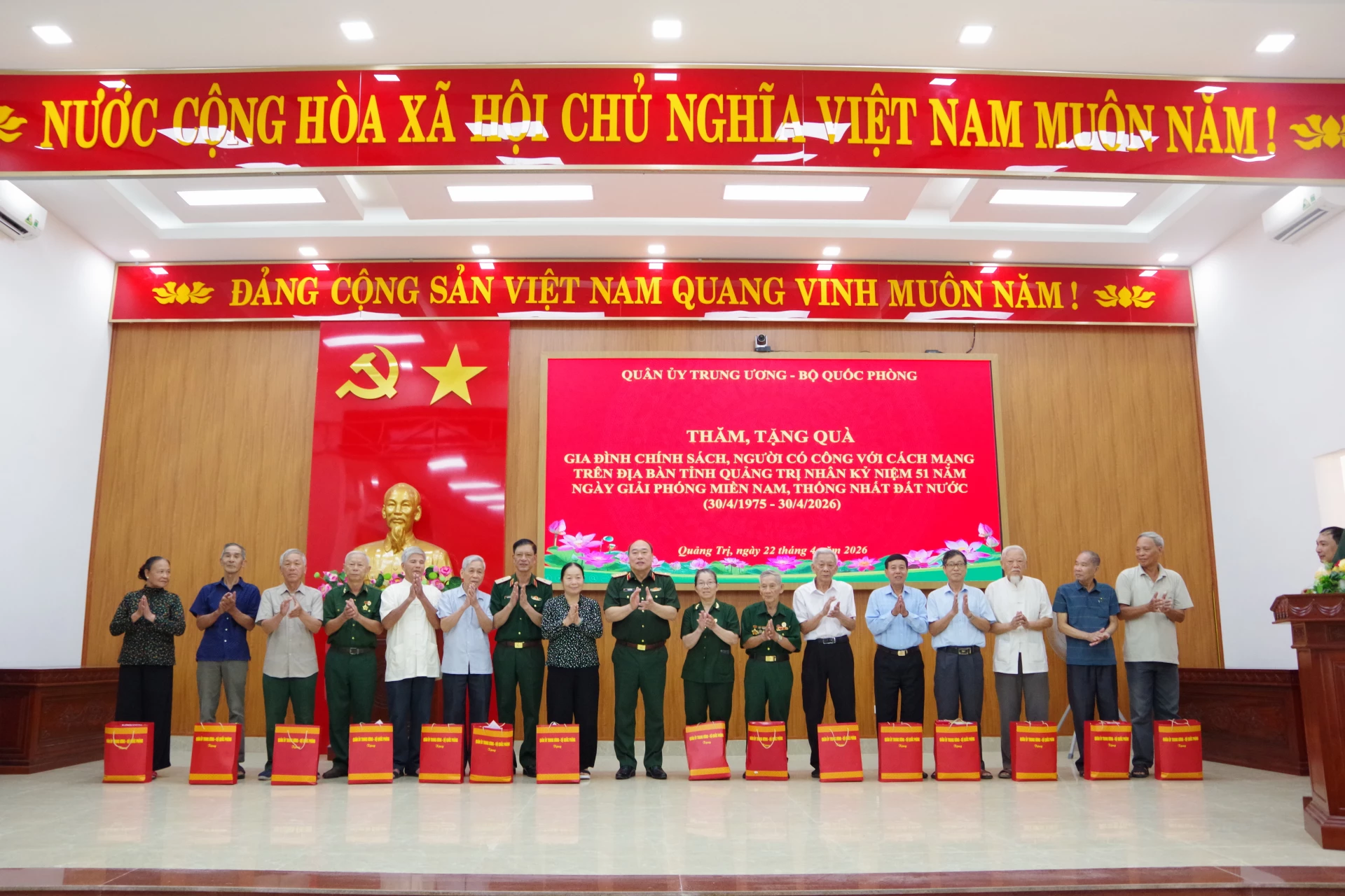 Nhân dịp này, đồng chí Trung tướng Lê Quang Đạo cùng đoàn công tác đã đến thăm, tặng 50 suất quà cho các gia đình chính sách, người có công với cách mạng trên địa bàn phường Quảng Trị; đồng thời ủy quyền cho Bộ Chỉ huy Quân sự tỉnh trao quà của Quân ủy Trung ương, Bộ Quốc phòng cho 50 gia đình chính sách trên địa bàn tỉnh.