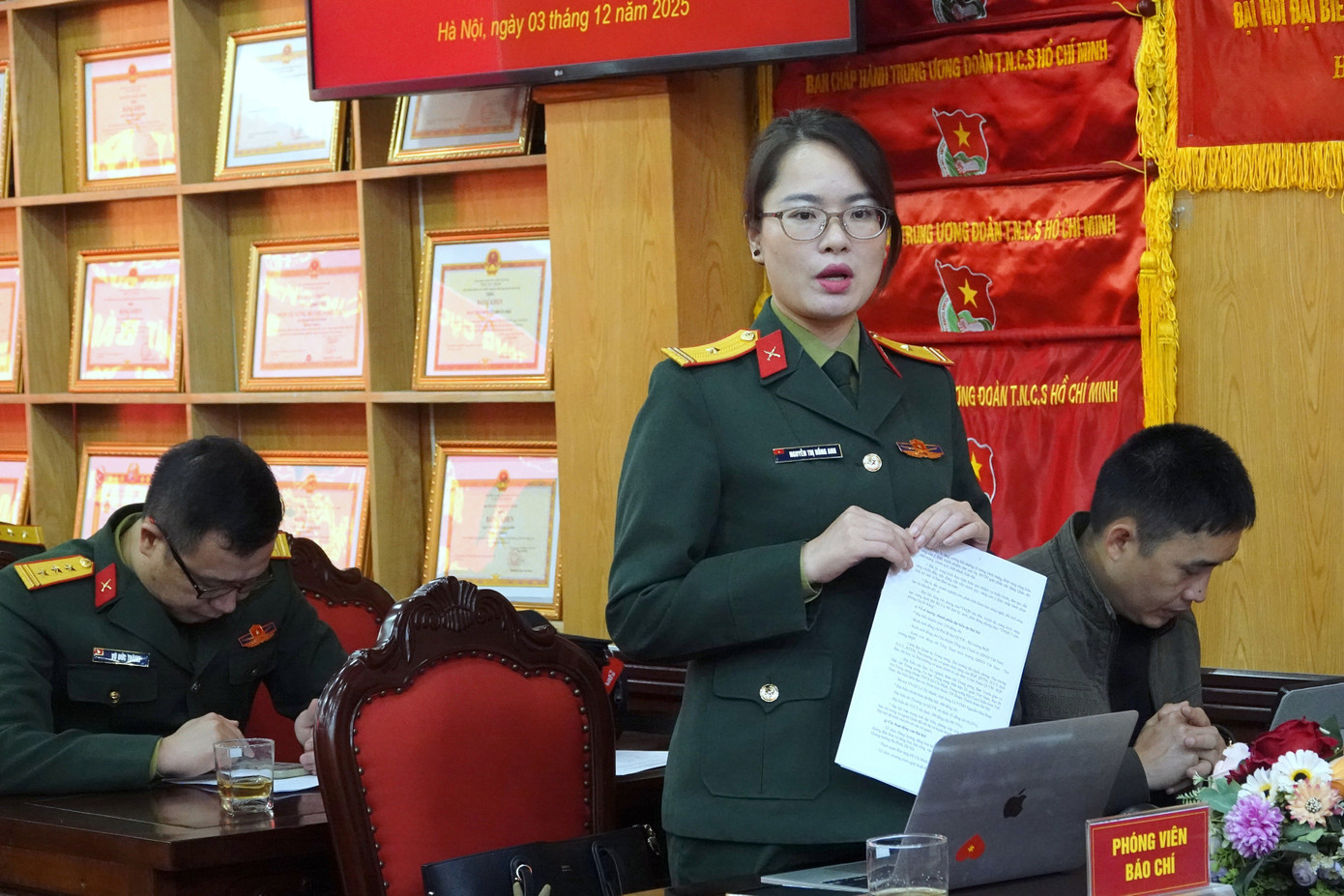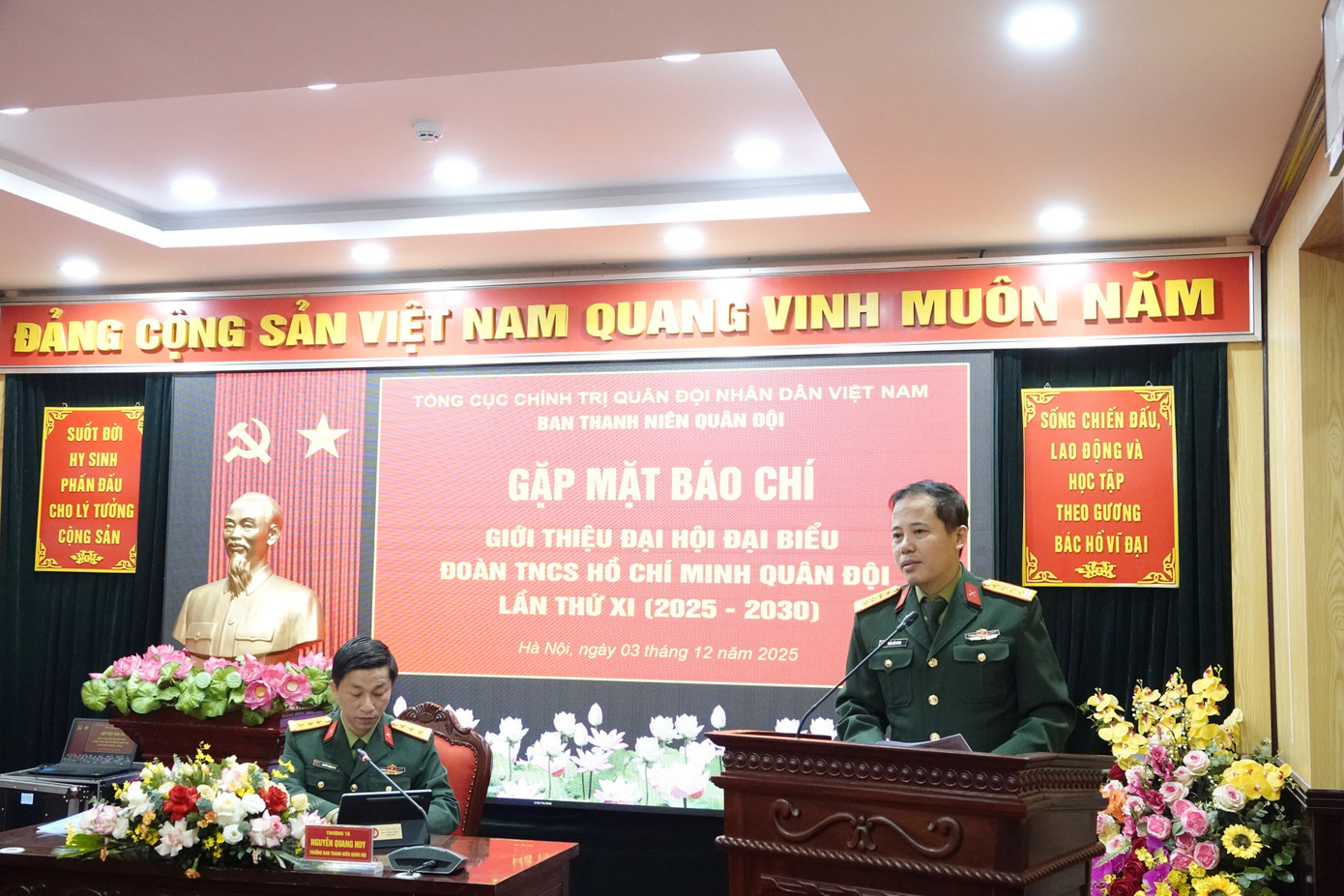 Sáng 3/12, tại Hà Nội, Ban Thanh niên Quân đội (Tổng cục Chính trị Quân đội nhân dân Việt Nam) tổ chức gặp mặt báo chí giới thiệu Đại hội đại biểu Đoàn TNCS Hồ Chí Minh Quân đội lần thứ XI.