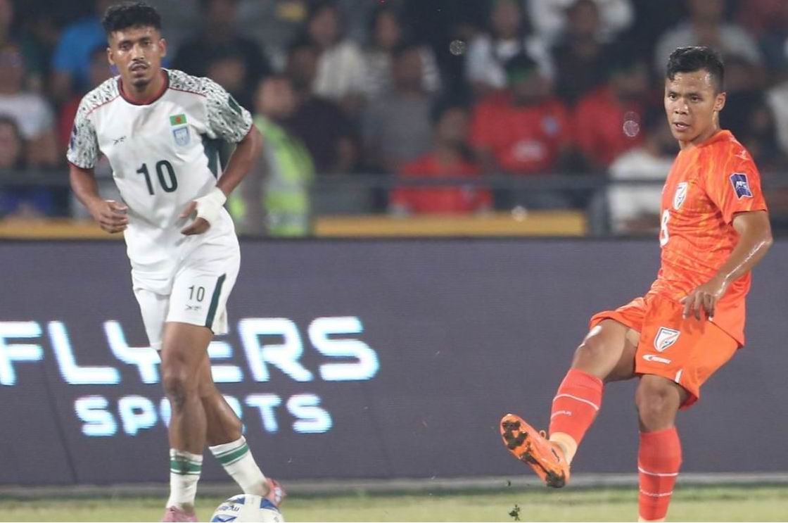 Bangladesh (trắng) lấy 4 điểm qua hai lần chạm trán với Ấn Độ nên họ không quá yếu. Ảnh: AFC