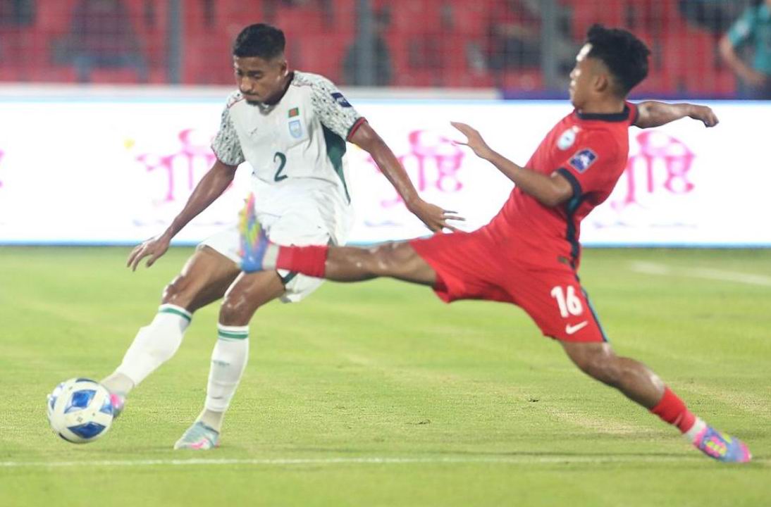 Tuyển Singapore (đỏ) nhất bảng C trước 1 vòng đấu nhưng cũng khó đánh bại Bangladesh ở lượt đi. Ảnh: AFC