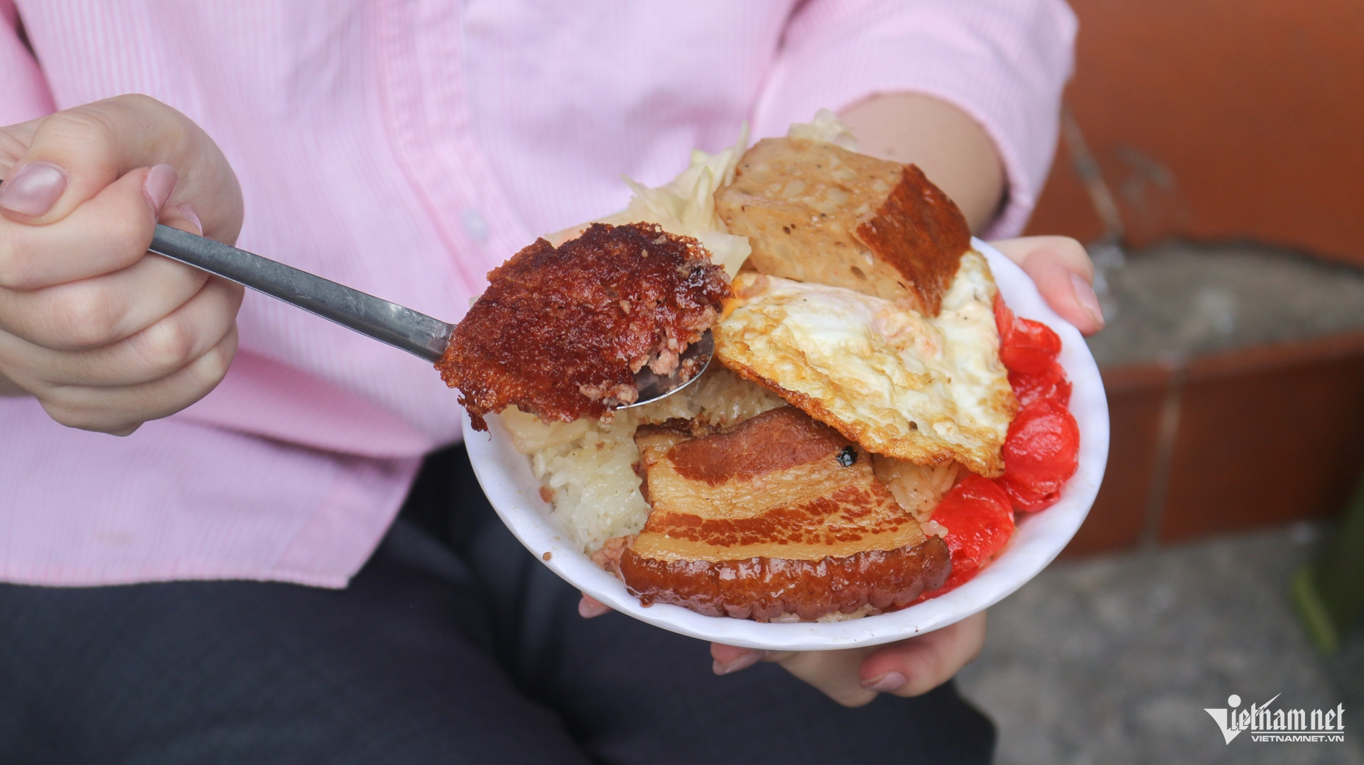 Không cầu kỳ về hình thức, nhưng mỗi phần xôi tại đây lại được chăm chút theo cách riêng. Xôi trắng dẻo, hạt tròn, tơi, bốc khói nghi ngút, mang hương thơm dịu của nếp mới. Thịt kho được cắt thành từng miếng vuông vức, mềm và đậm vị. Ngoài ra, quán còn có trứng ốp, chả, lạp xưởng đáp ứng đa dạng khẩu vị của thực khách.