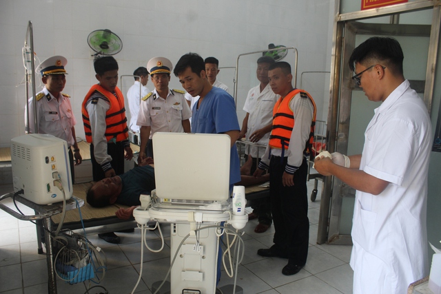 Ngay sau đó, ông Thọ thấy mệt, tức ngực dữ dội, khó thở, yếu 2 chi dưới, bụng chướng căng, bí tiểu… Ngư dân này được những người đi cùng tàu khẩn trương đưa vào Bệnh xá đảo Song Tử Tây.