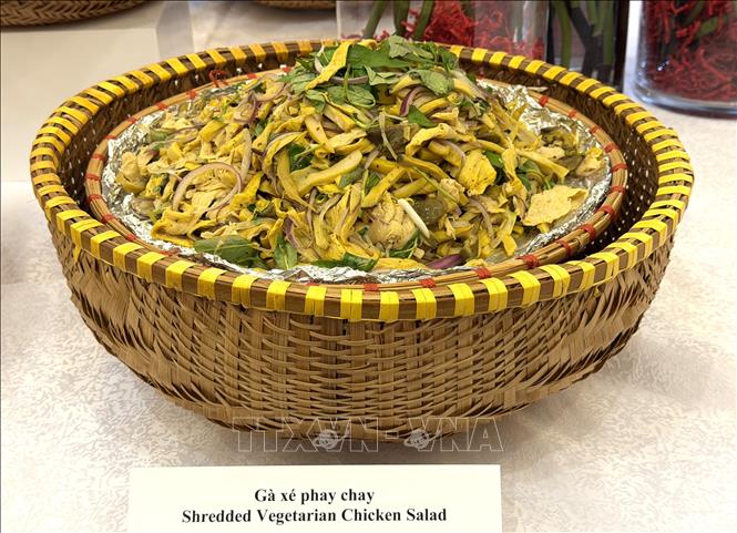 "Gà" xé phay chay - món ăn từ nguyên liệu thực vật trong chương trình trải nghiệm ẩm thực chay Việt Nam. Ảnh: Ngọc Quang/PV TTXVN tại Mỹ