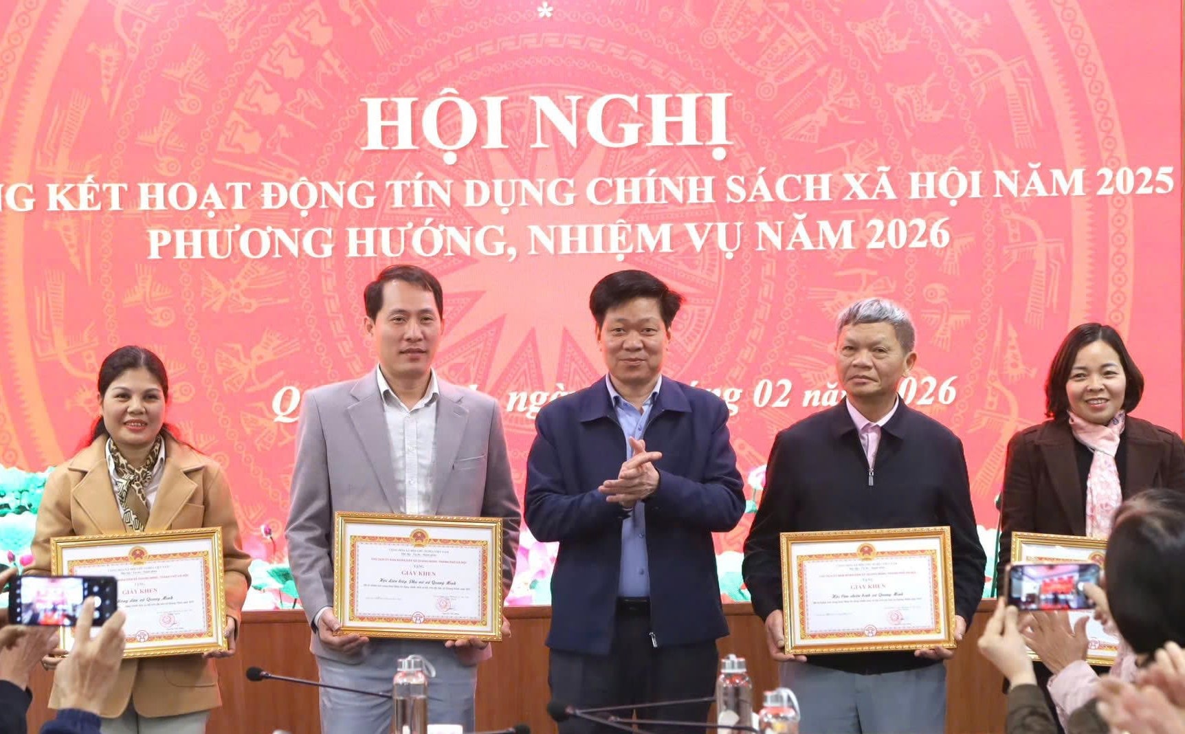 Nhân dịp này, UBND xã Quang Minh đã khen thưởng 4 tập thể và 14 cá nhân có thành tích xuất sắc trong công tác vay vốn và tín dụng chính sách năm 2025.