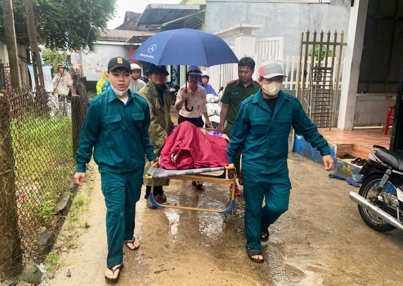 Lực lượng chức năng hỗ trợ di dời người dân đến nơi an toàn.
