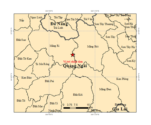 Trận động đất thứ 9 được ghi nhận vào 11 giờ 15 ngày 13/10 tại khu vực miền Tây Quảng Ngãi