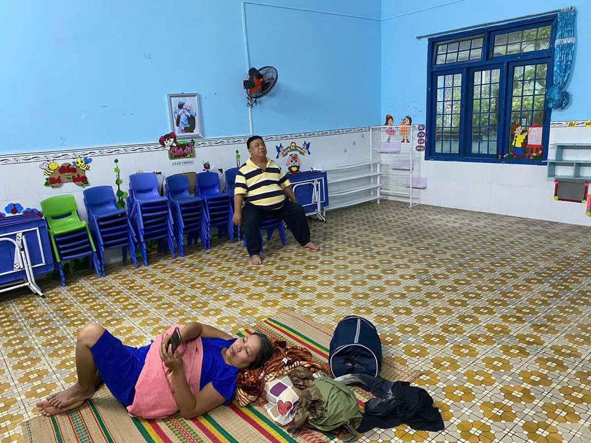 Người dân Quảng Ngãi được đưa tới khu sơ tán tránh bão số 13 an toàn. Ảnh: CV.