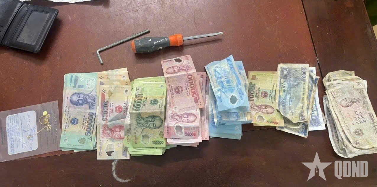 Một số tài sản, tiền mặt liên quan đến các vụ trộm cắp do đối tượng N.T.D. thực hiện.