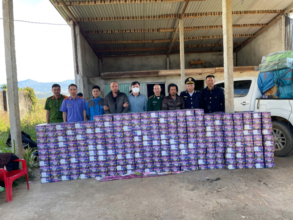 Vào khoảng 02h50’ ngày 27/1, tại địa phận xã Bờ Y (Quảng Ngãi) giáp khu vực biên giới Việt Nam - Lào, các lực lượng chức năng phát hiện Hoàng Văn Chức (SN 1988; nơi ở hiện tại: xã Chư Sê), Nguyễn Hữu Quốc (SN 1989; nơi ở hiện tại: xã Biển Hồ) cùng ở tỉnh Gia Lai) đang vận chuyển pháo lậu bằng ô tô bán tải. Tại hiện trường, lực lượng Công an đã thu giữ 1.290 hộp pháo hoa nghi là pháo nổ loại 49 ống.