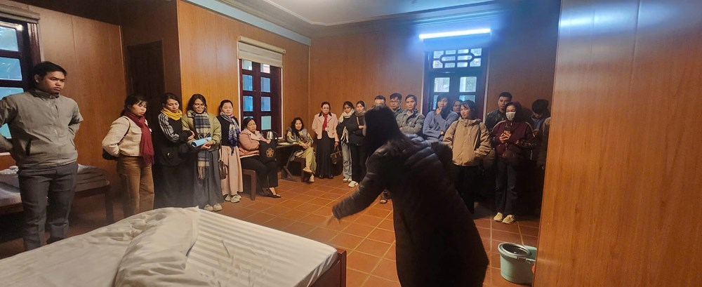 Ngoài lý thuyết, các học viên còn được các chuyên gia truyền đạt kỹ năng phục vụ lưu trú du lịch
