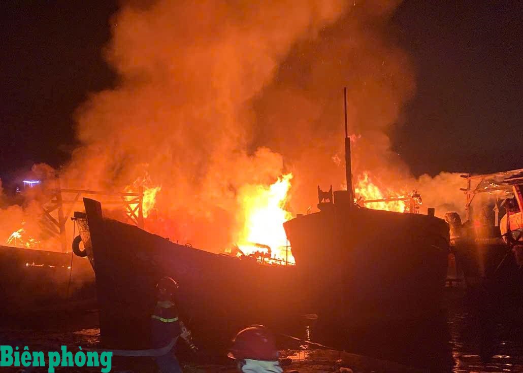 Theo đó, khoảng 1 giờ ngày 15/1, Đồn Biên phòng Bình Thạnh nhận được tin báo của nhân dân về việc 4 tàu cá có số hiệu QNg 95221TS, QNg 95554TS, QNg 90735TS và QNg 95138TS bị cháy khi đang neo đậu tại khu vực sông Trà Bồng, thuộc thôn Mỹ Tân, xã Bình Sơn, tỉnh Quảng Ngãi. Sau khi nhận được tin báo, đơn vị đã cử lực lượng đến hiện trường tham gia cùng chủ tàu, chính quyền địa phương và lực lượng phòng cháy chữa cháy, cứu nạn cứu hộ Công an tỉnh chữa cháy. Đến 6 giờ cùng ngày đám cháy đã được dập tắt.