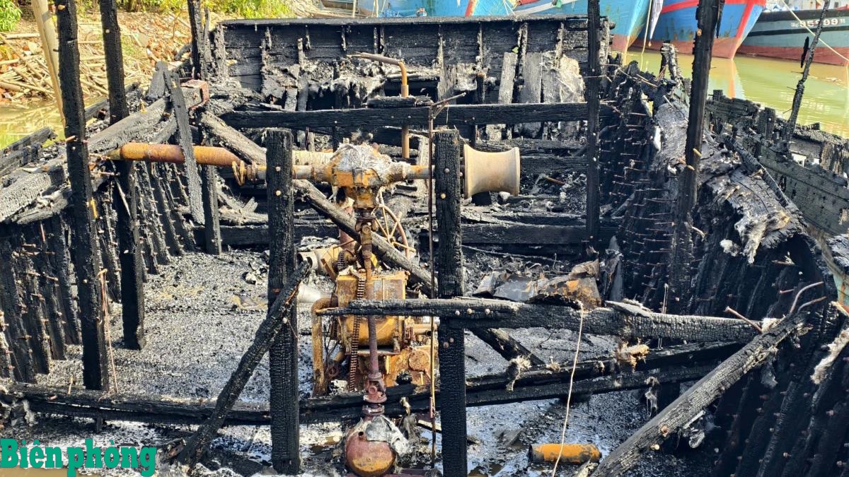 Một trong 4 tàu cá bị thiệt hại nặng trong vụ cháy. Ảnh: Văn Tánh