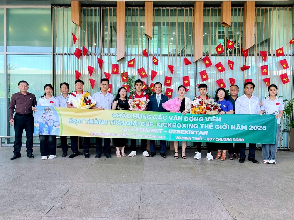 Hoàn thành xuất sắc nhiệm vụ thi đấu cùng Đội tuyển Quốc gia, 2 vận động viên được lãnh đạo Sở Văn hóa, Thể thao và Du lịch cùng địa phương chào đón nồng nhiệt khi về đến sân bay Chu Lai.