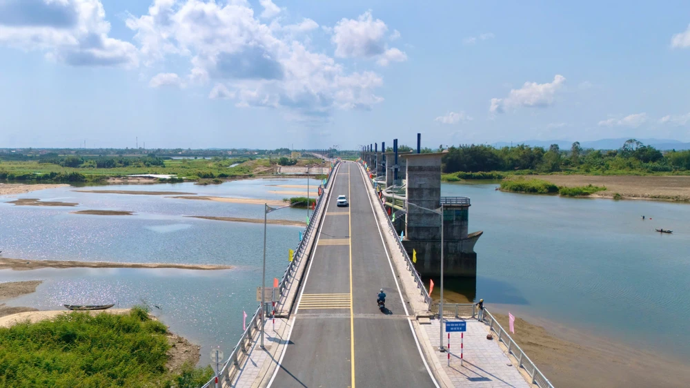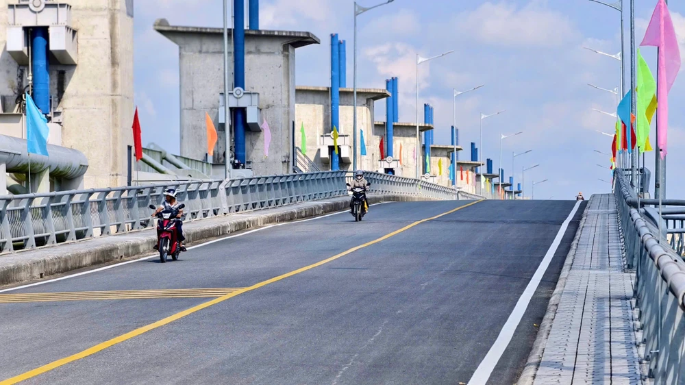 Những ngày sau Tết Nguyên đán Bính Ngọ 2026, dòng xe máy, ô tô lưu thông nhộn nhịp trên đường qua đập dâng sông Trà Khúc, tỉnh Quảng Ngãi.