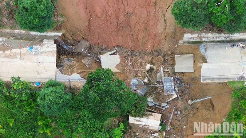 Do bị sạt lở nghiêm trọng tại Km 8+200 nên đến chiều 14/11, tuyến ĐH83 vẫn chưa khắc phục xong, gây chia cắt giao thông vào xã Sơn Tây Hạ.
