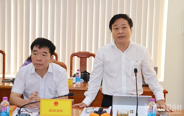 Giám đốc Sở Xây dựng tỉnh Quảng Ngãi Nguyễn Phúc Nhân báo cáo tình hình thực hiện nhiệm vụ trọng tâm của sở trong thời gian qua.