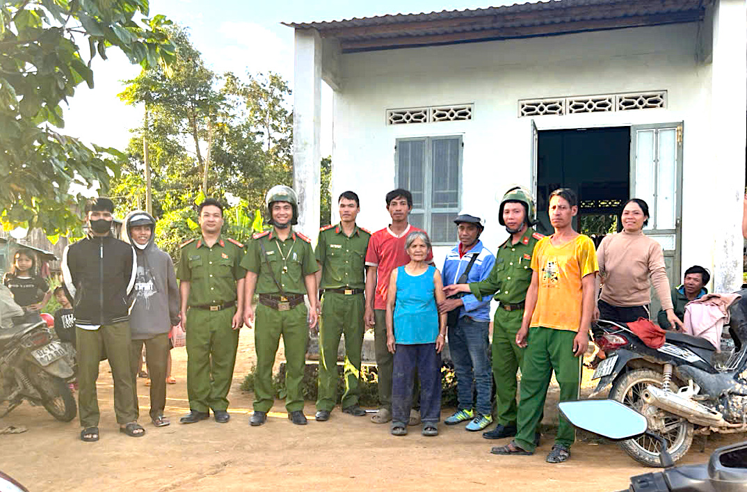 Cụ bà Y Bẽ đã được công an đưa về nhà an toàn