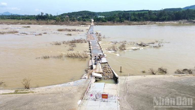 Lũ lớn khiến cầu tràn Thạch Nham bị hư hỏng nặng.