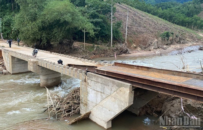Cùng với đó, hàng loạt công trình nước sạch, y tế, trường học, thủy lợi bị hư hỏng. Hơn 250 vị trí trên các tuyến Quốc lộ, đường tỉnh; 376 tuyến giao thông tại 60 xã, phường bị sạt lở, hư hỏng nặng; xuất hiện 43 điểm sạt lở đồi, núi, sạt lở bờ sông, bờ biển ảnh hưởng trực tiếp đến nhiều người dân.