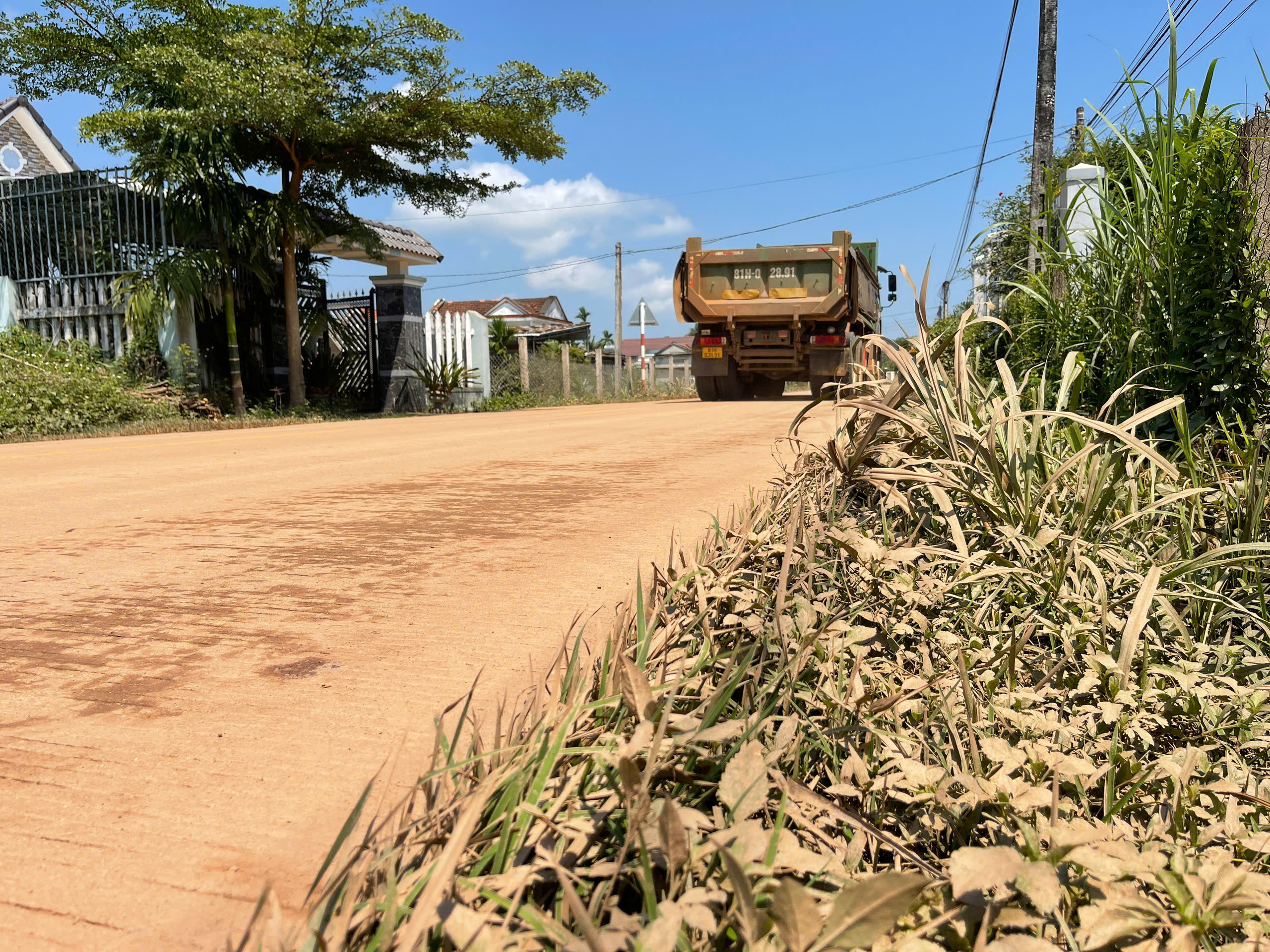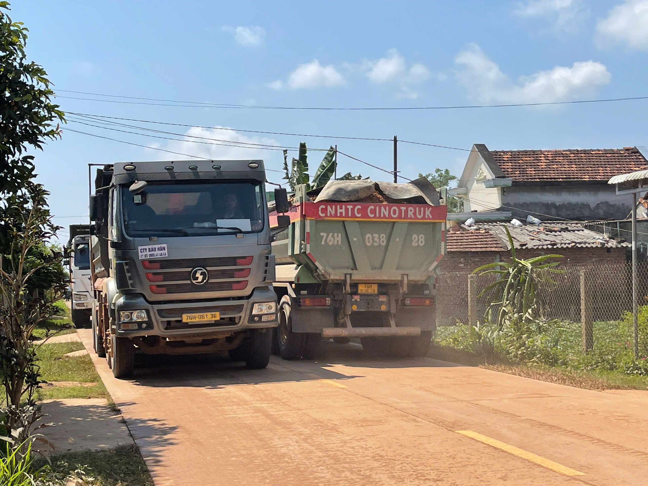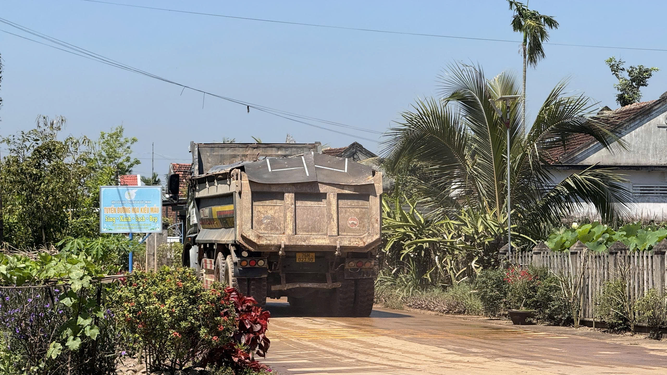Mỗi khi xe tải đi qua, đất rơi vãi khắp mặt đường, bụi cuộn lên mù mịt, không chỉ làm giảm tầm nhìn mà còn ảnh hưởng trực tiếp đến sức khỏe và sinh hoạt của người dân.
