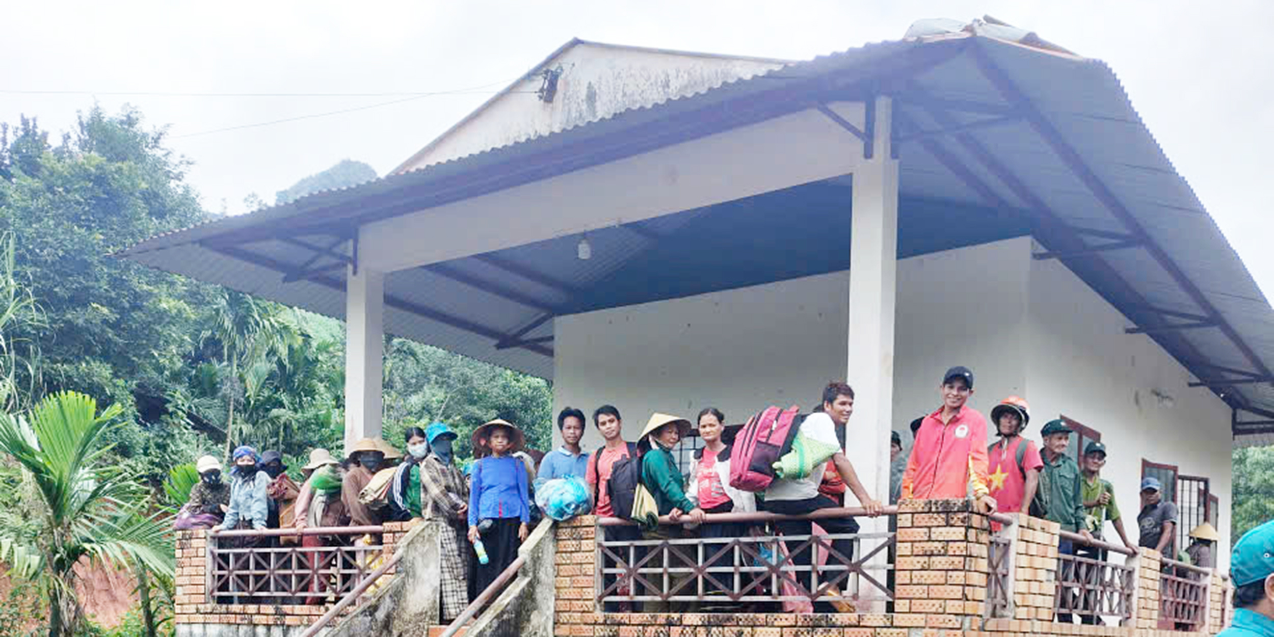 Người dân ở thôn Ba Lang (xã Ba Vinh) đã được sơ tán, bố trí đến nơi ở an toàn. Ảnh: XUÂN HUYÊN