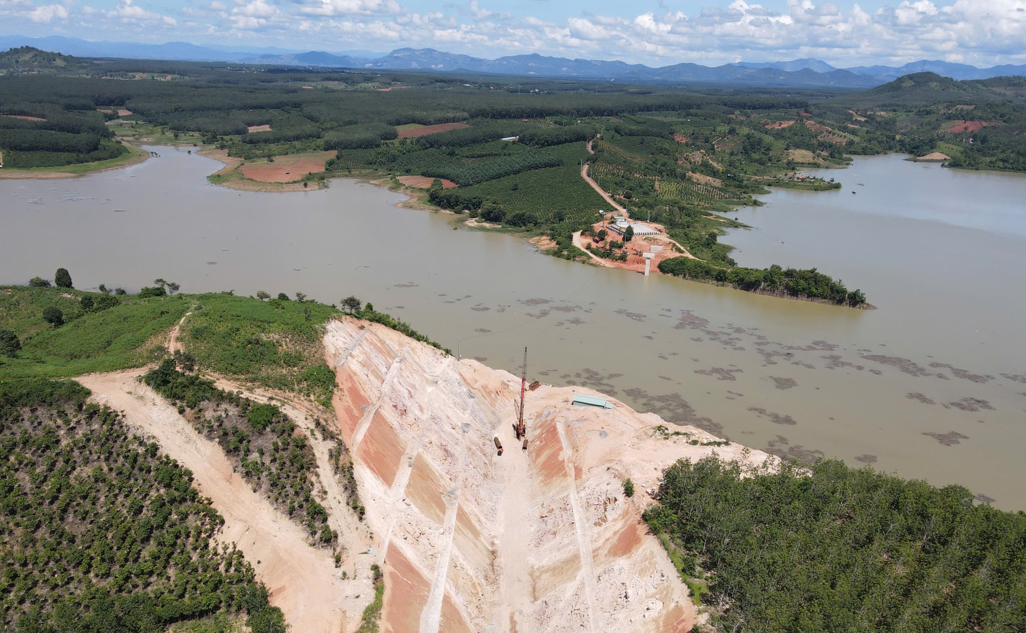 Đơn cử, dự án cầu và đường hai đầu cầu từ bến du lịch xã Ia Chim đến xã Ya Ly (Quảng Ngãi), tổng vốn gần 170 tỷ đồng, khởi công tháng 9/2022, dự kiến hoàn thành cuối năm 2025. Song, đến nay, công trình trọng điểm này vẫn "treo" khi hạng mục chính là phần cầu chỉ thi công được hai mố cầu, riêng 5 trụ ở giữa lòng hồ thủy điện vẫn "đứng hình".