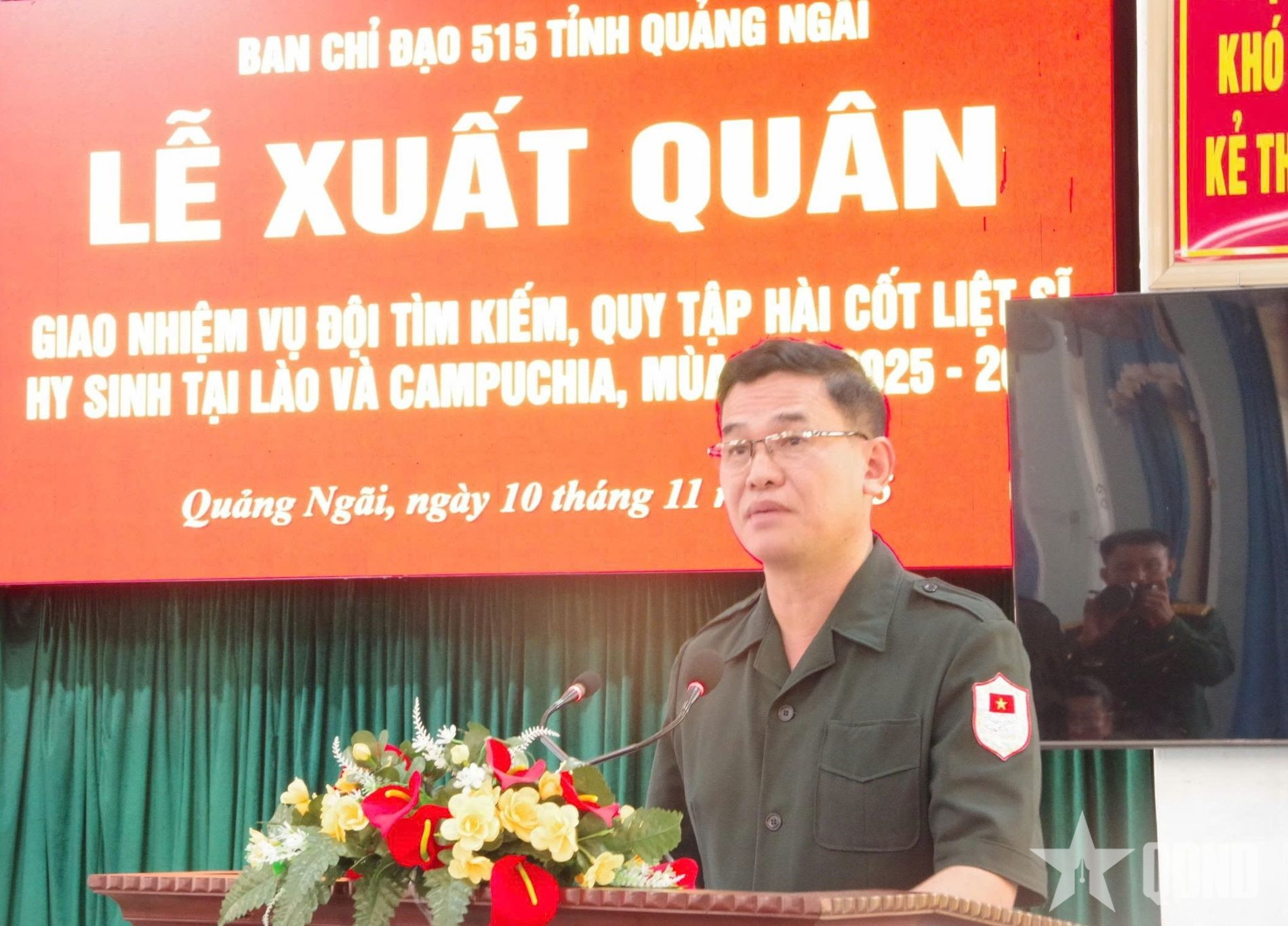 Phát biểu giao nhiệm vụ, Đại tá Võ Tấn Tài, Chính ủy Bộ CHQS tỉnh Quảng Ngãi, Phó trưởng ban Thường trực Ban Chỉ đạo 515 khẳng định, công tác tìm kiếm, quy tập hài cốt liệt sĩ là nhiệm vụ đặc biệt khó khăn, song cũng là niềm vinh dự lớn lao.