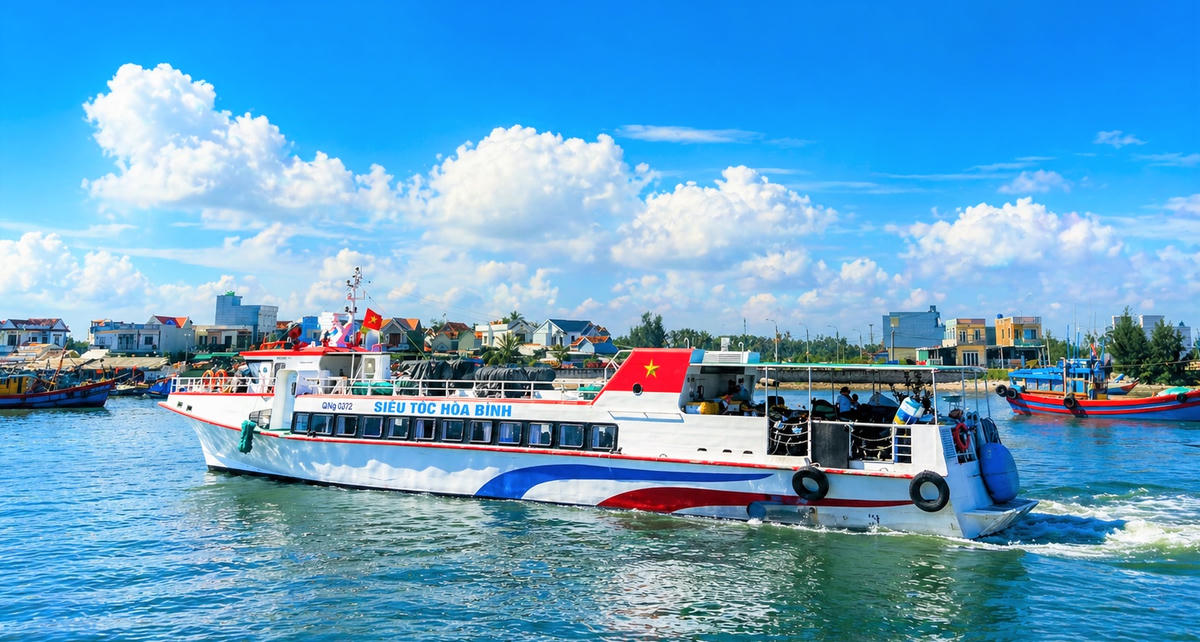 Tàu cao tốc vận chuyển hành khách từ cảng Sa Kỳ ra đặc khu Lý Sơn và ngược lại. Ảnh: Tấn Thành.