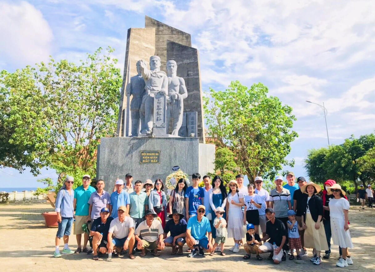 Du khách chụp ảnh lưu niệm tại Tượng đài Đội Hoàng Sa kiêm Quản Bắc Hải trên đặc khu Lý Sơn. Chí Đại.
