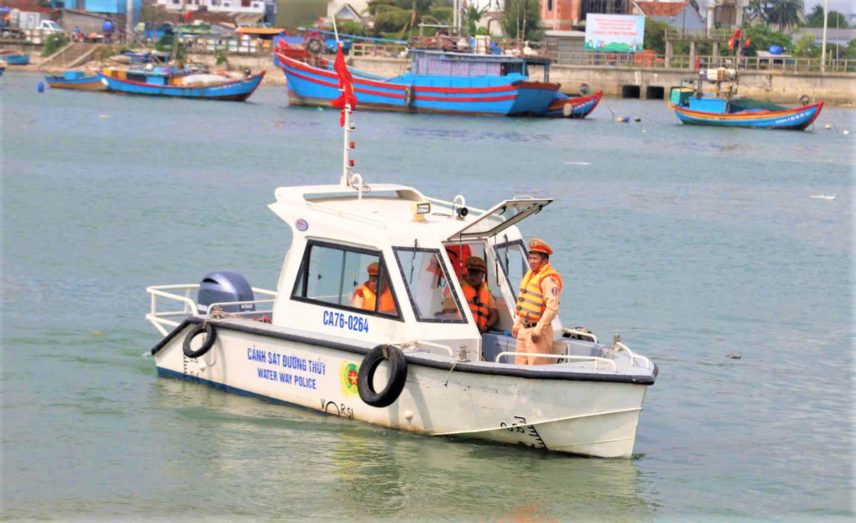 Lực lượng chức năng Quảng Ngãi tuần tra, kiểm soát vận chuyển hành khách đường thủy. Ảnh: Chí Đại.