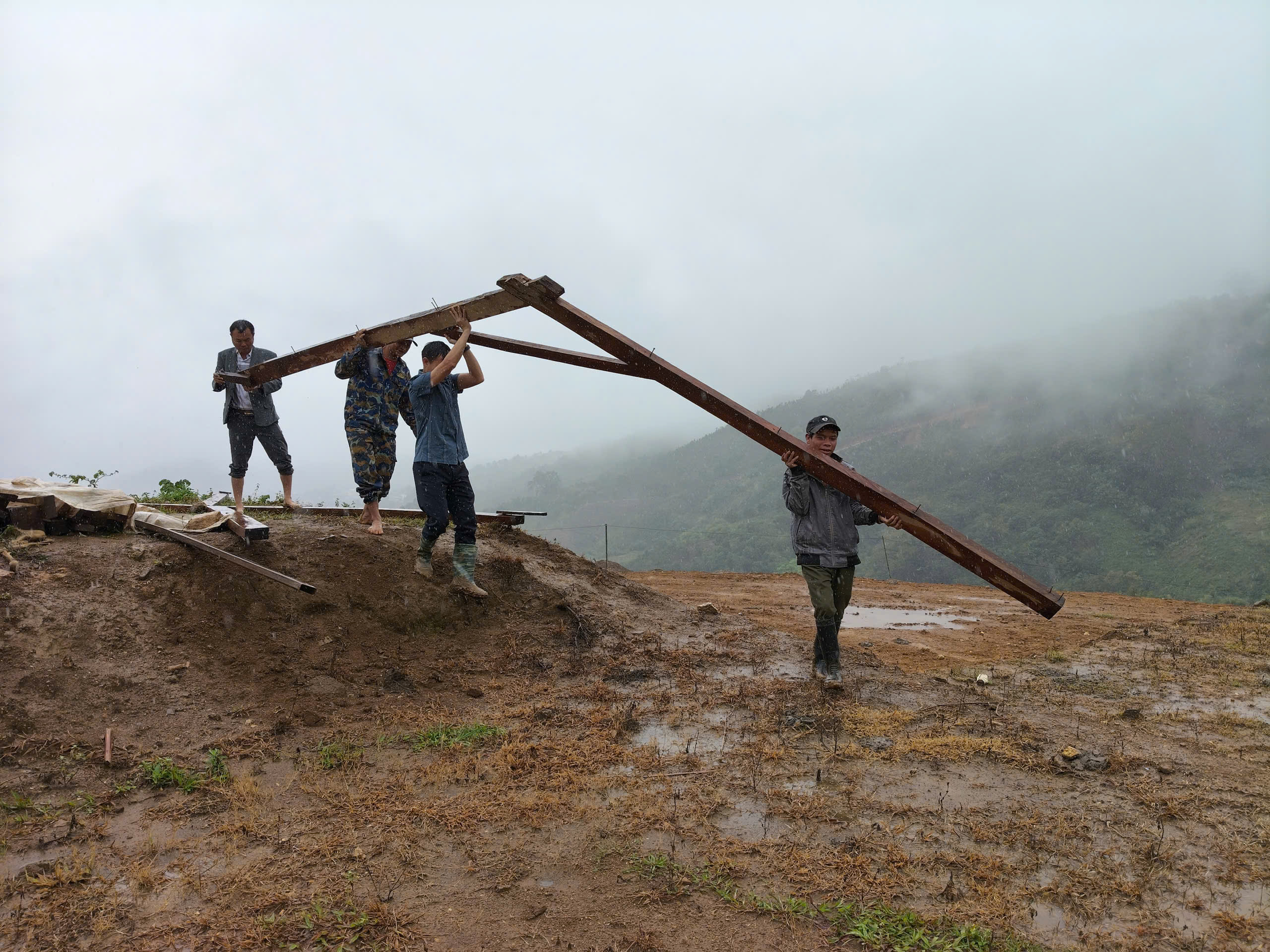 Cán bộ xã Măng Ri ra quân giúp dân dựng lại nhà ở