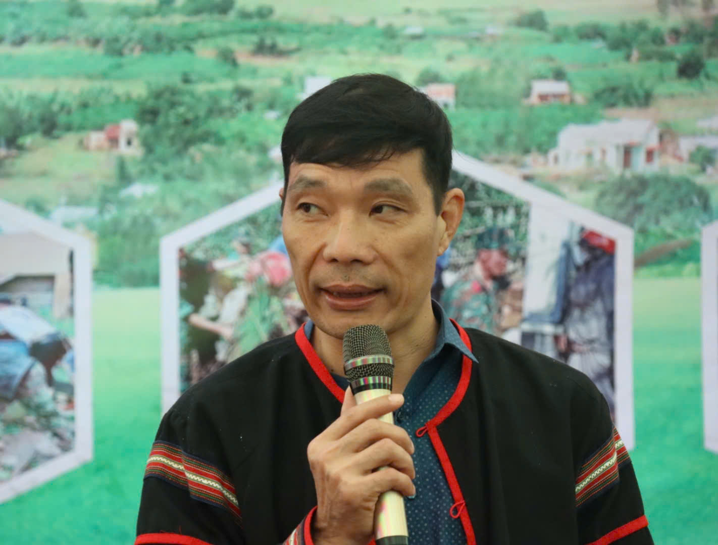 Ông Phạm Xuân Quang, Chủ tịch UBND xã Măng Ri phát biểu tại lễ phát động, giao nhiệm vụ cho 140 cán bộ cùng giúp dân dựng nhà trước tết