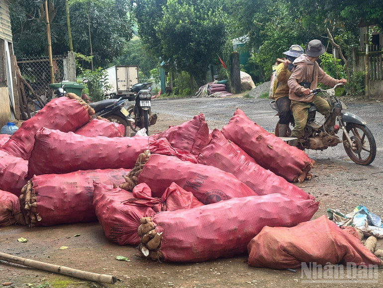 “Nhà nào cũng có xe này, có nhà 3 chiếc. Giá sắn các xã khác 23 nghìn đồng mỗi ký, còn ở đây chưa đến 13 nghìn đồng. Chúng tôi thu hoạch lỗ ngày công, chăm sóc. Sắn ở đây không tính theo mùa mà tính theo năm. Khi giá cao thì một năm thu hoạch, giá thấp thì bỏ đấy có khi hai năm mới chở về. Thương lái ép giá liên tục”, anh Nam chua chát.