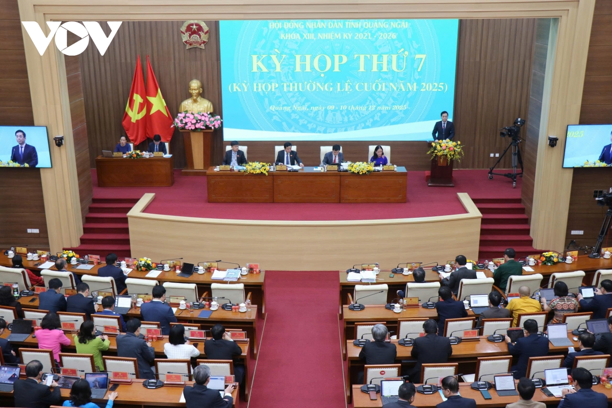 Chiều 10/12, HĐND tỉnh Quảng Ngãi, khóa 13 đã bế mạc kỳ họp cuối năm. Năm 2025 là năm tỉnh Quảng Ngãi tăng tốc và về đích của kế hoạch 5 năm. GRDP của tỉnh ước tăng hơn 10%, cao nhất khu vực Nam Trung Bộ - Tây Nguyên; GRDP bình quân đầu người vượt 100 triệu đồng. Tỉnh Quảng Ngãi cơ cấu lại đầu tư công theo hướng ưu tiên hạ tầng chiến lược; tổng vốn đầu tư toàn xã hội năm 2025 đạt 82.200 tỷ đồng, lũy kế 5 năm gần 340.000 tỷ đồng. Sau hơn 5 tháng vận hành mô hình chính quyền địa phương hai cấp, bộ máy các cấp dần ổn định, tinh gọn và hiệu quả hơn.