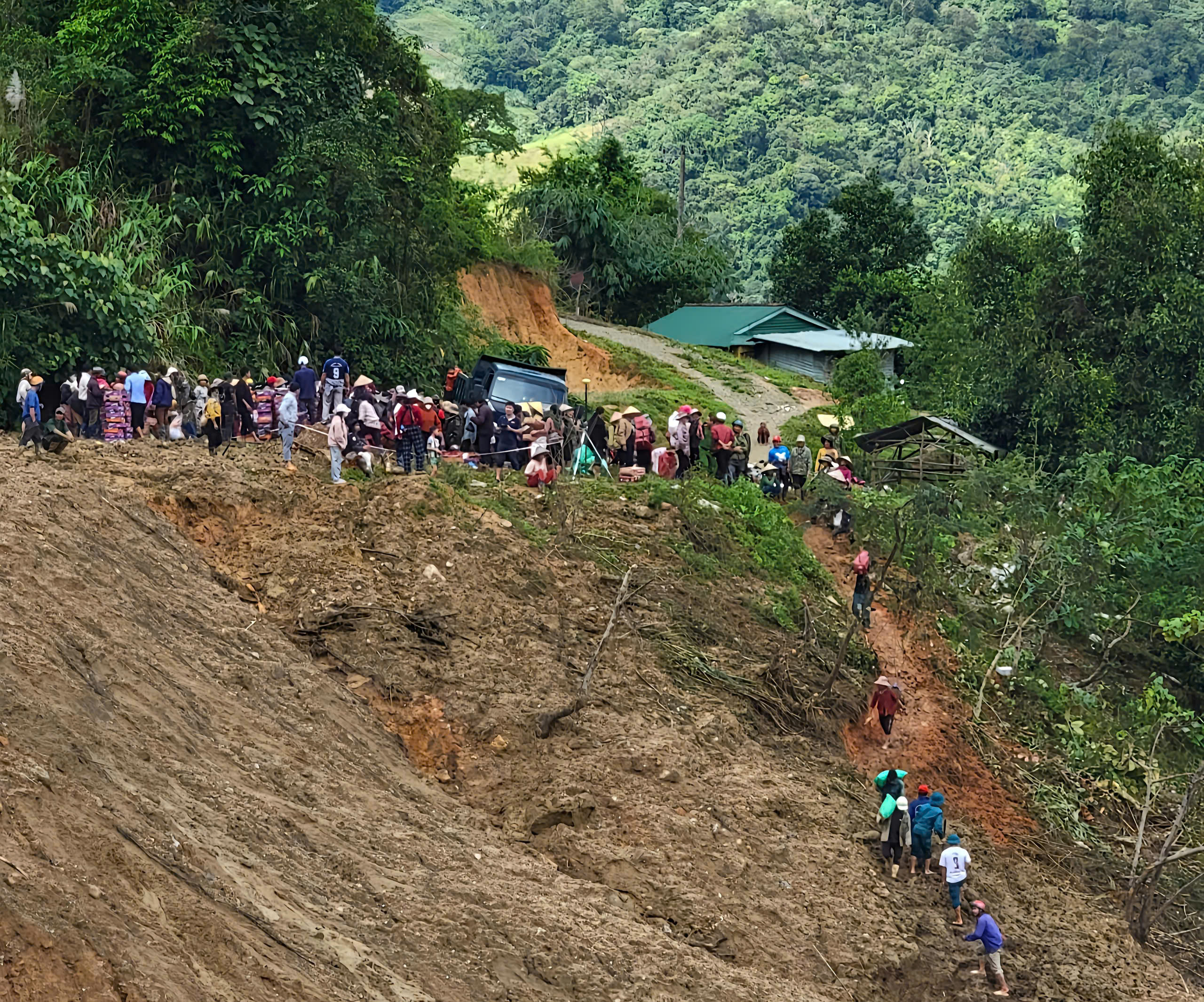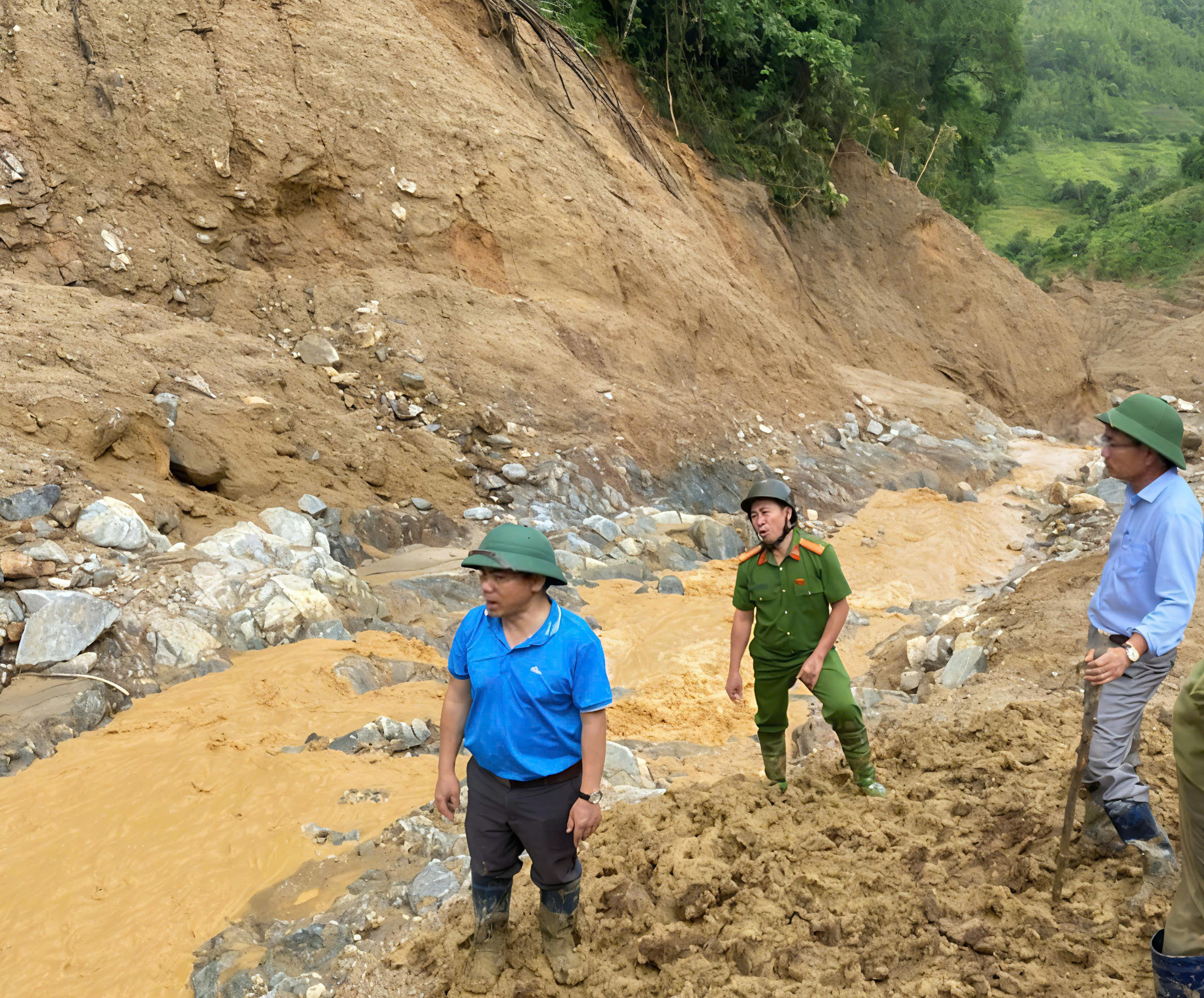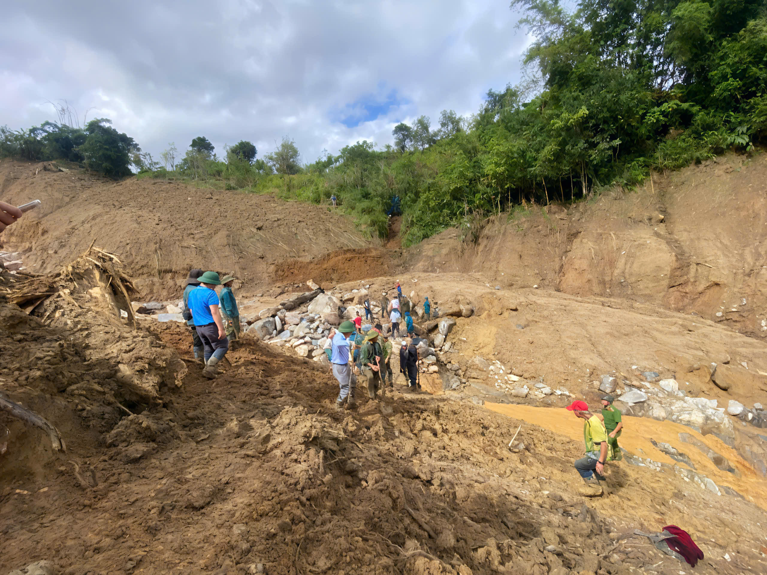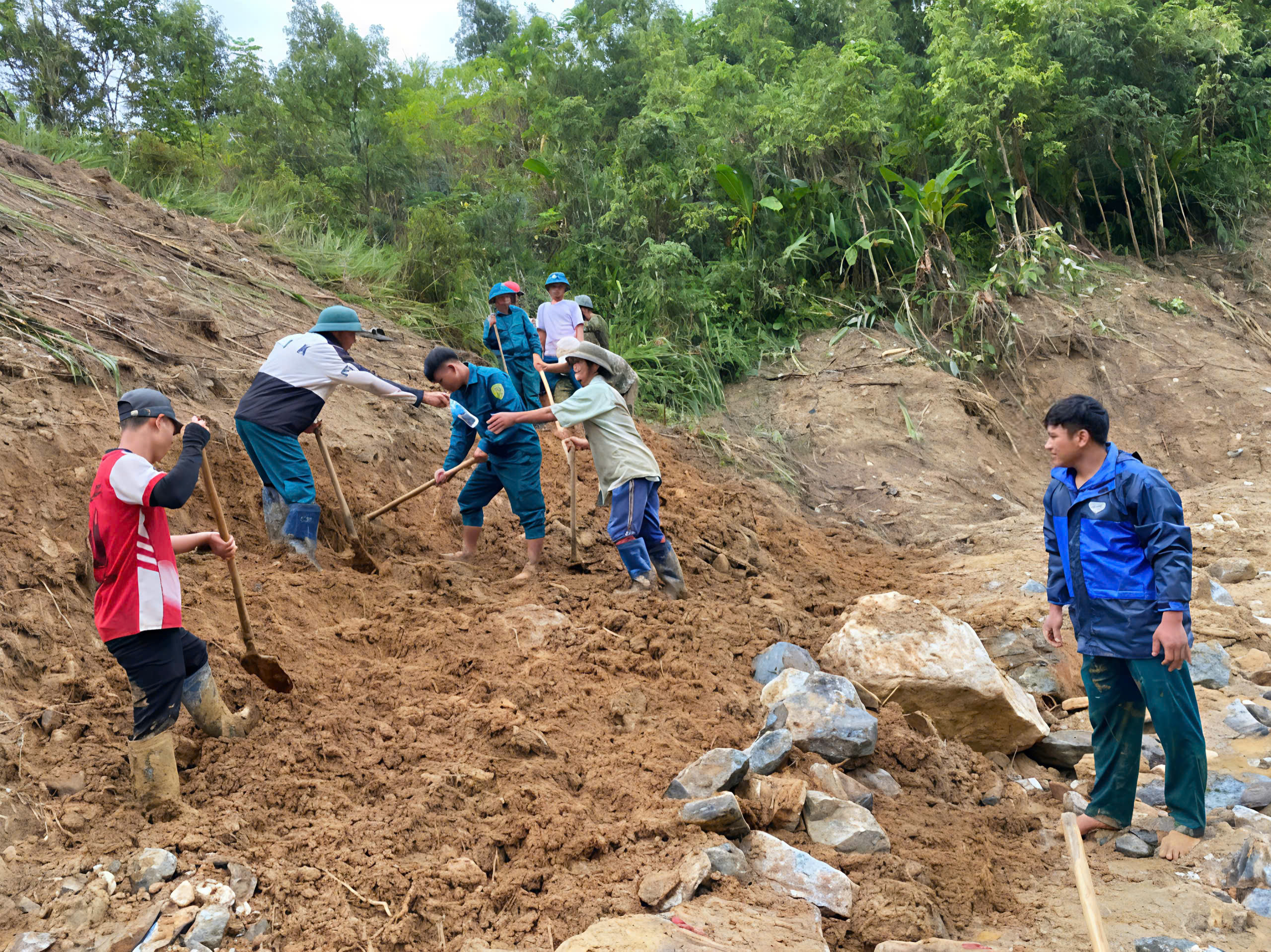 Khu vực sạt lở dài khoảng 300m, chưa thể khắc phục ngay. Trước tình hình cấp bách, địa phương quyết định mở tuyến đường nhỏ băng qua vị trí sạt lở, tạo lối gùi hàng cứu trợ vào bên trong. Ông Nguyễn Ngọc Sâm, Phó Chủ tịch UBND tỉnh Quảng Ngãi, có mặt tại hiện trường chỉ đạo công tác mở đường, đôn đốc lực lượng khẩn trương hoàn thành để sớm vận chuyển lương thực cứu trợ cho người dân; đồng thời động viên bà con yên tâm sinh sống, khẳng định tỉnh sẽ luôn quan tâm, đồng hành và hỗ trợ người dân vượt qua khó khăn.