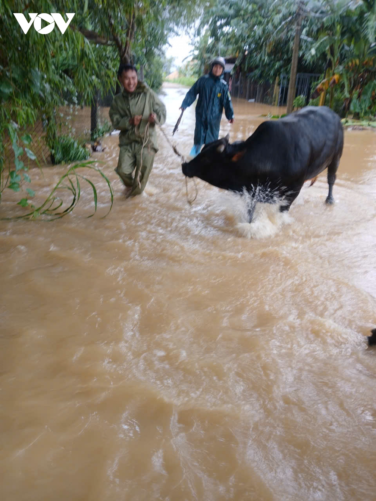 Di dời gia súc lên chỗ cao để tránh ngập lụt.