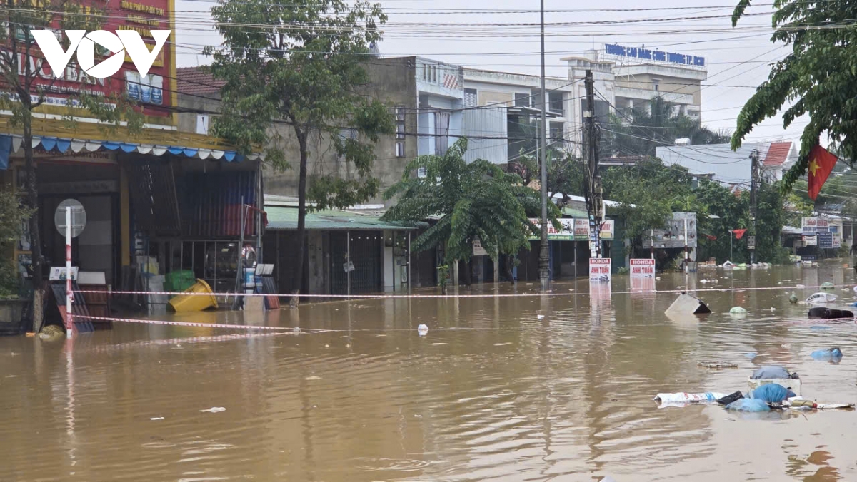 Ven sông Trà Khúc, tỉnh Quảng Ngãi bị ngập nặng.