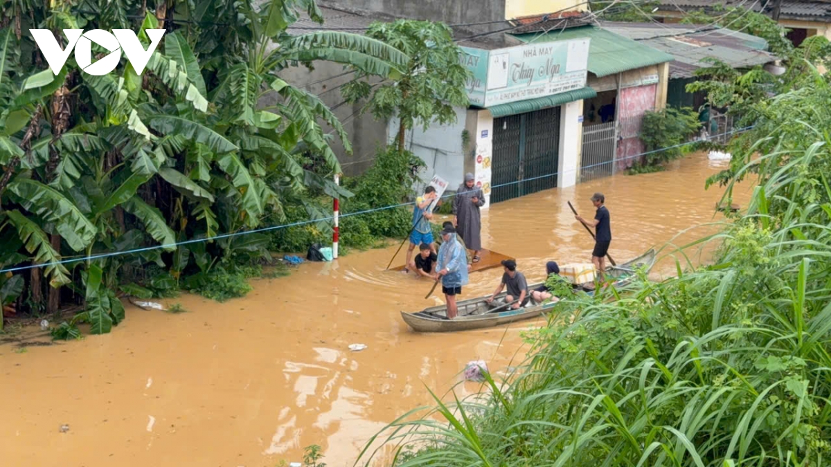 Nhiều khu vực ngập sâu, người dân dùng ghe để di chuyển.