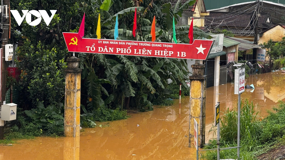 Một tổ dân phố ở phường Trương Quang Trọng (huyện Sơn Tịnh cũ) bị ngập.