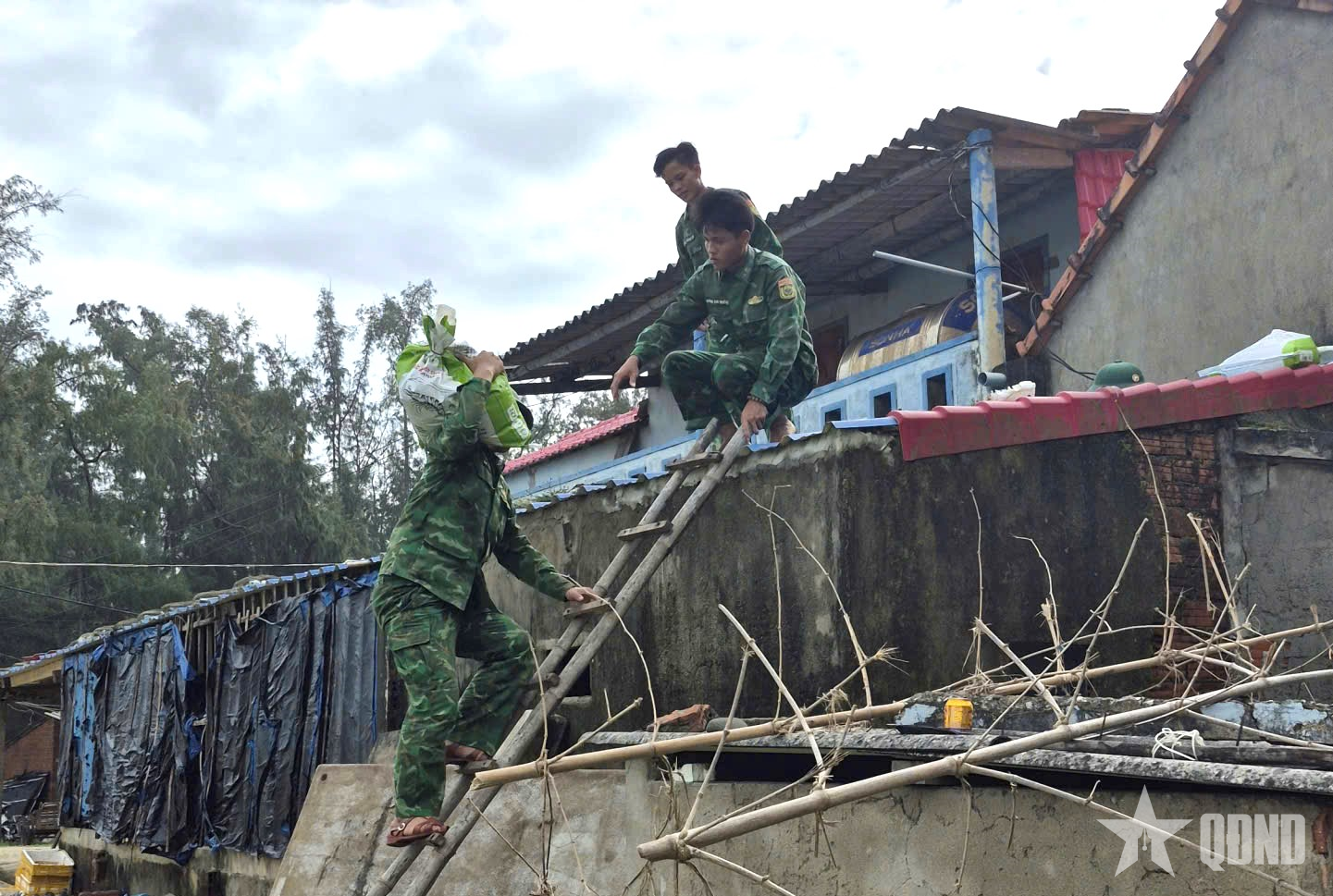 LLVT tỉnh Quảng Ngãi hỗ trợ nhân dân ứng phó bão số 13.