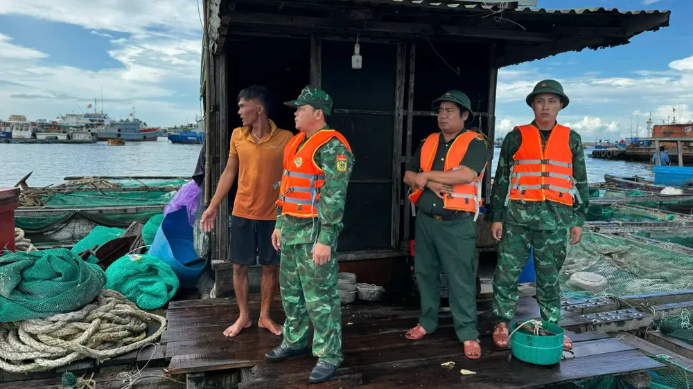 Các lồng bè thủy sản được neo chặt, lực lượng chức năng yêu cầu người trên bè vào bờ trú ẩn.