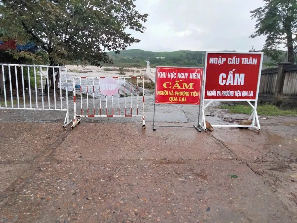 Chính quyền địa phương đã cấm phương tiện qua lại cầu tràn Thạch Nham.