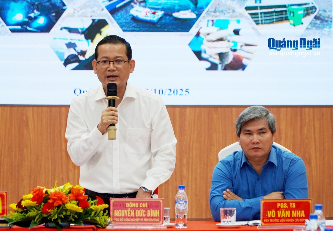 Phát biểu tại hội nghị, Phó Giám đốc Sở NN&MT Nguyễn Đức Bình khẳng định, hiện nay Quảng Ngãi là địa phương sở hữu không gian phát triển thủy sản đa dạng, phong phú; là địa bàn giàu tiềm năng và lợi thế về nuôi trồng thủy sản với cả vùng biển và cao nguyên. Tỉnh vừa có bờ biển dài hơn 130km và vùng biển đảo đặc khu Lý Sơn, vừa có hàng nghìn héc ta diện tích mặt nước các hồ chứa, ao, đầm.