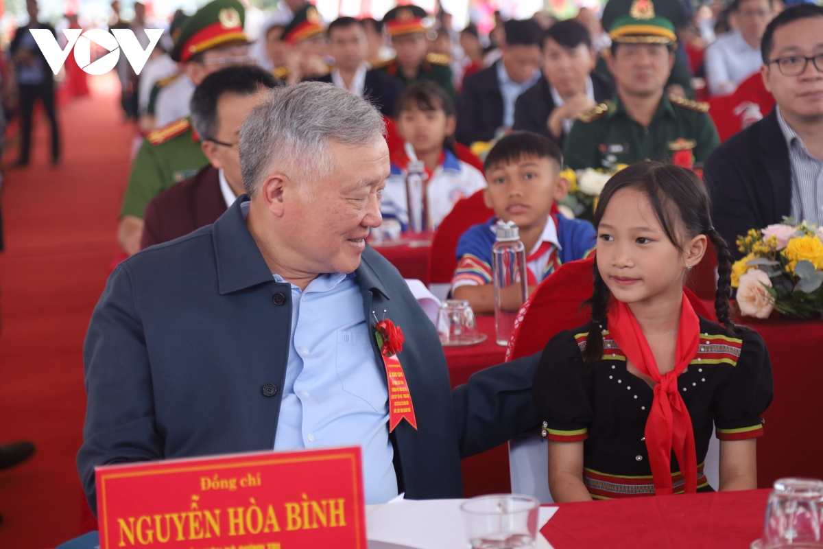 "Tôi tin rằng công trình sẽ được xây dựng theo tinh thần cống hiến, không vì mục đích lợi nhuận, để mỗi đồng kinh phí mà nhân dân đã chắt chiu, đóng góp tạo nên diện mạo mới cho vùng biên cương, góp phần nâng cao dân trí của đồng bào và nâng bước các em đến trường”, ông Nguyễn Hòa Bình nói.