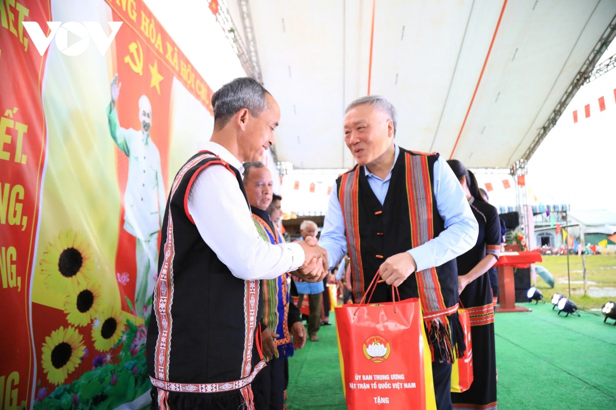 Cũng trong sáng nay, Phó Thủ tướng Thường trực Chính phủ Nguyễn Hòa Bình cùng lãnh đạo bộ, ngành, Tỉnh ủy, UBND, Ủy ban Mặt trận Tổ quốc Việt Nam tỉnh Quảng Ngãi tham dự Ngày hội Đại đoàn kết toàn dân tộc tại thôn Chả Nhầy, xã Dục Nông.