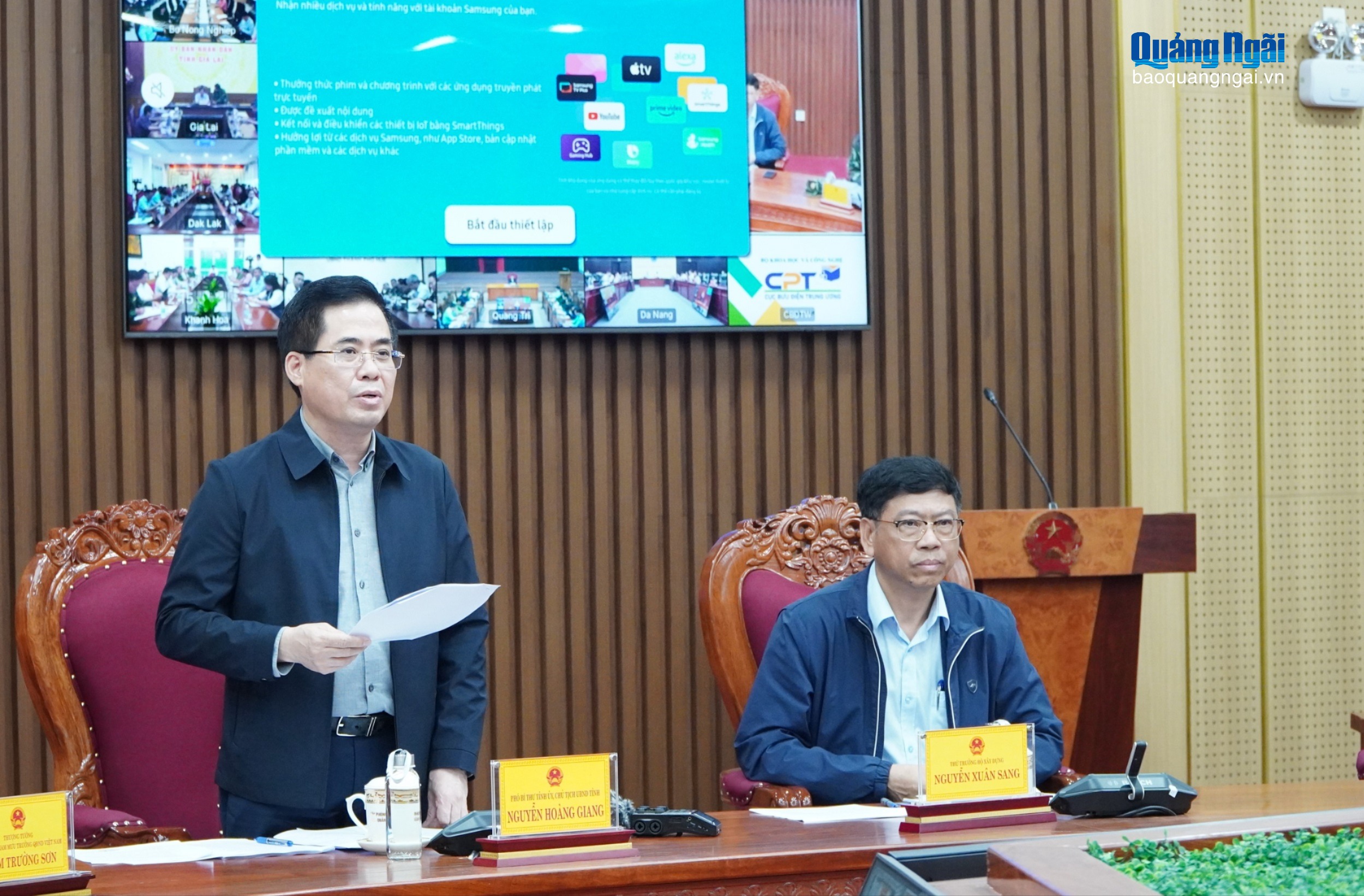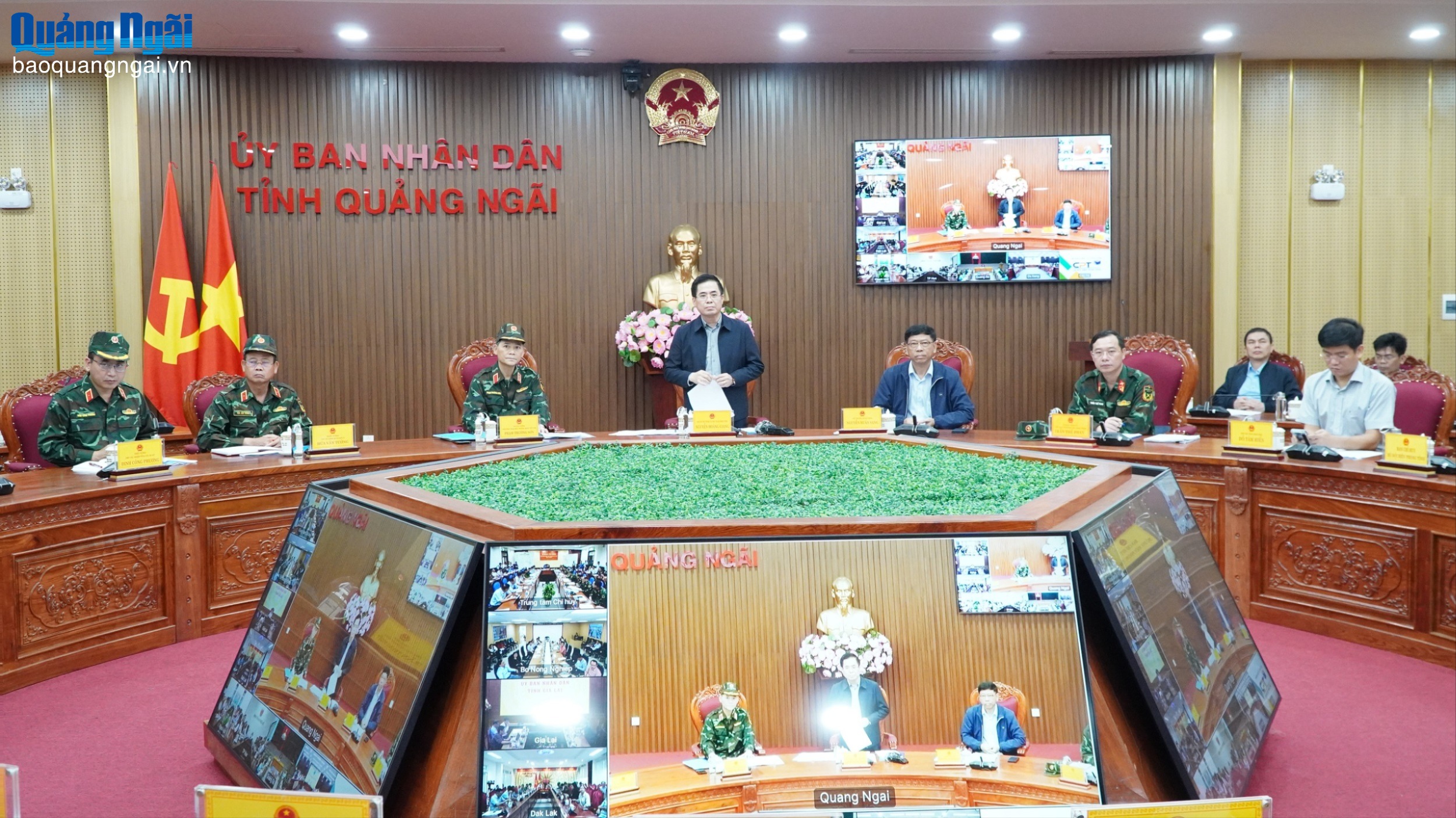 Dự họp tại điểm cầu Quảng Ngãi có Thứ trưởng Bộ Xây dựng Nguyễn Xuân Sang; Thượng tướng Phạm Trường Sơn - Phó Tổng Tham mưu trưởng Quân đội nhân dân Việt Nam (Bộ Quốc phòng). Về phía tỉnh Quảng Ngãi có Phó Bí thư Tỉnh ủy, Chủ tịch UBND tỉnh Nguyễn Hoàng Giang; lãnh đạo các sở, ngành, đơn vị liên quan.